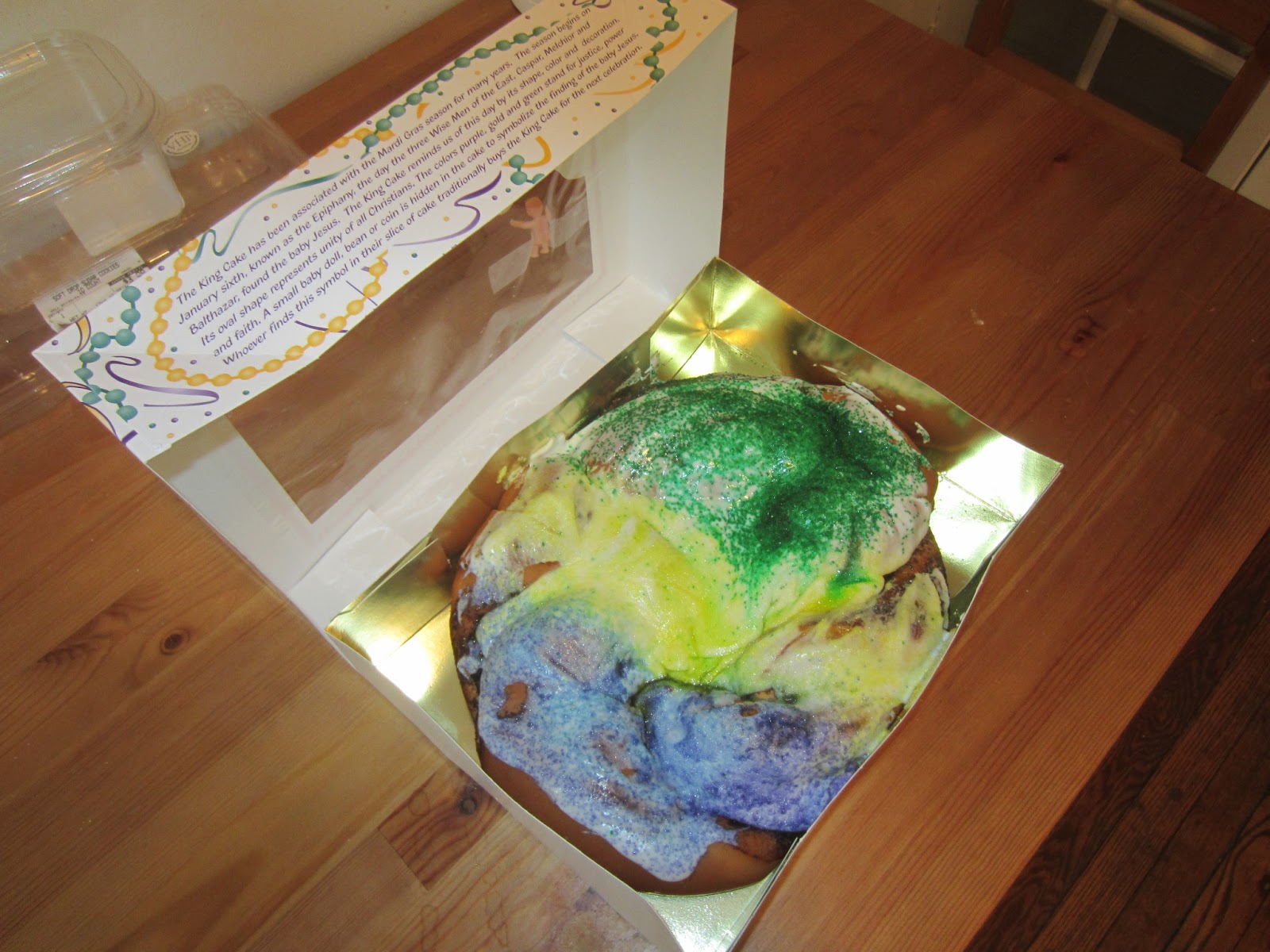 А тут приближается Жирный Вторник - он же Марди Грас. Жили бы мы в Новом Орлеане, то хорошо представляли, что это за праздник. Что-то вроде русской Масленицы. Вылез из языческих ритуалов, потом взят под крыло христианством, а теперь вновь обрастает новоязыческими и капиталистическими традициями. Казалось бы, где Новый Орлеан, а где Питтсбург, но и у нас в продажу поступили разноцветные King's Cakes по $7.