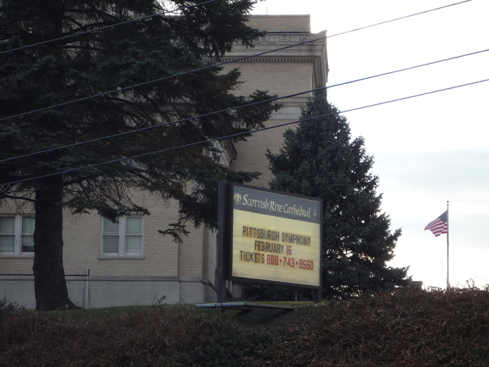 В эту субботу мы побывали на необычном концерте Pittsburgh Symphony Orchestra. Во-первых, он исполнялся не в знакомом нам Heinz Hall'е в Даунтауне Питтсбурга, а в Scottish Rite Cathedral в городке New Castle, PA в 50 милях к северо-западу от нас. Во-вторых, мы очень похожий концерт прослушали накануне в пятницу. Но рассказывать я буду в первую очередь не о музыке, а о типичном представителе пенсильванской провинции.