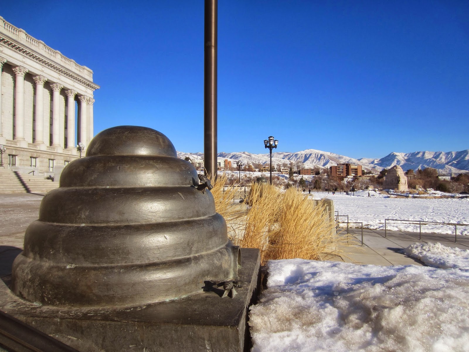 Перед входом в Капитолий стоит бронзовый пчелиный улей - символ штата Юты и его трудолюбивого мормонского населения.