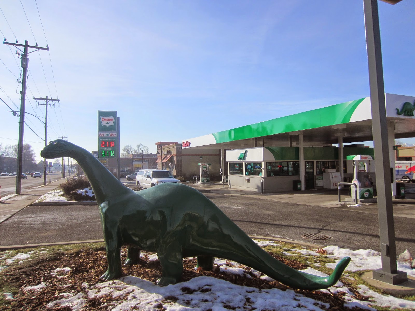 А с бензином в СЛС происходит следующая штука. На заправке Shell на углу 400 S 700 E цена упала до $2.01 за галлон. То есть как и цены на нефть - к весне 2009 года. А вот заправка Chevron на углу 200 S 700 E, которую я показывал в прошлом посте, исчезла. Вместо нее за ночь появился динозавр Sinclair с ценой на 20 центов ниже, чем был Chevron.