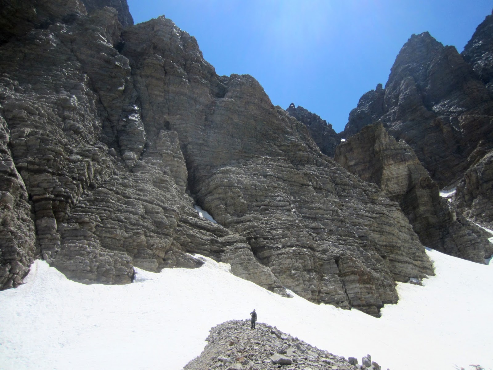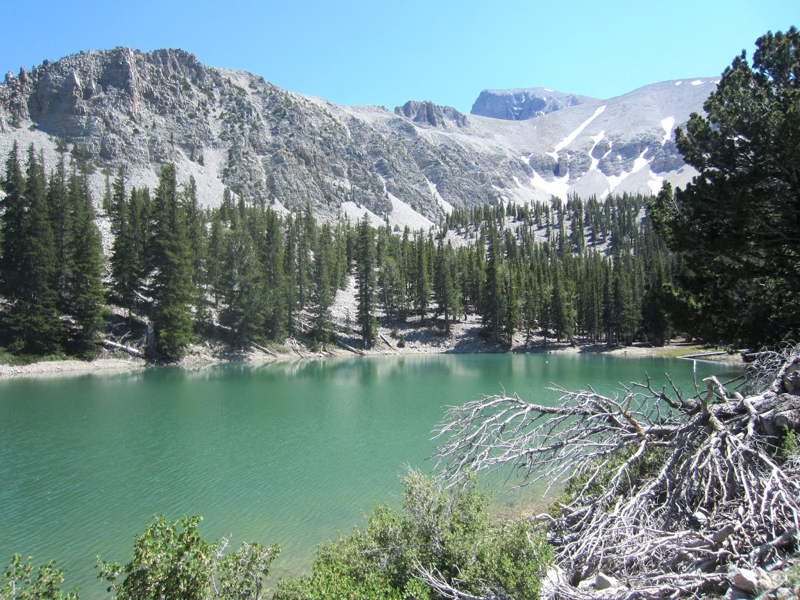 Итак, утром среды 24 июня мы часа за 4 добрались от СЛС до Great Basin NP. Парк относительно небольшой и считается наименее посещаемым из нац. парков в 48 “нормальных” штатах. Возможно, поэтому он еще и один из редких бесплатных парков. Там есть платные пещеры, в которые мы не пошли, а сразу поехали к тропам, откуда начинается подъем на Wheeler Peak - вторую по высоте гору Невады. На вершину мы не собирались - времени не было, да и не очень-то интересно там. Намного приятнее было прогуляться к северному склону, где под слоем камней сохранился последний в Неваде ледник.