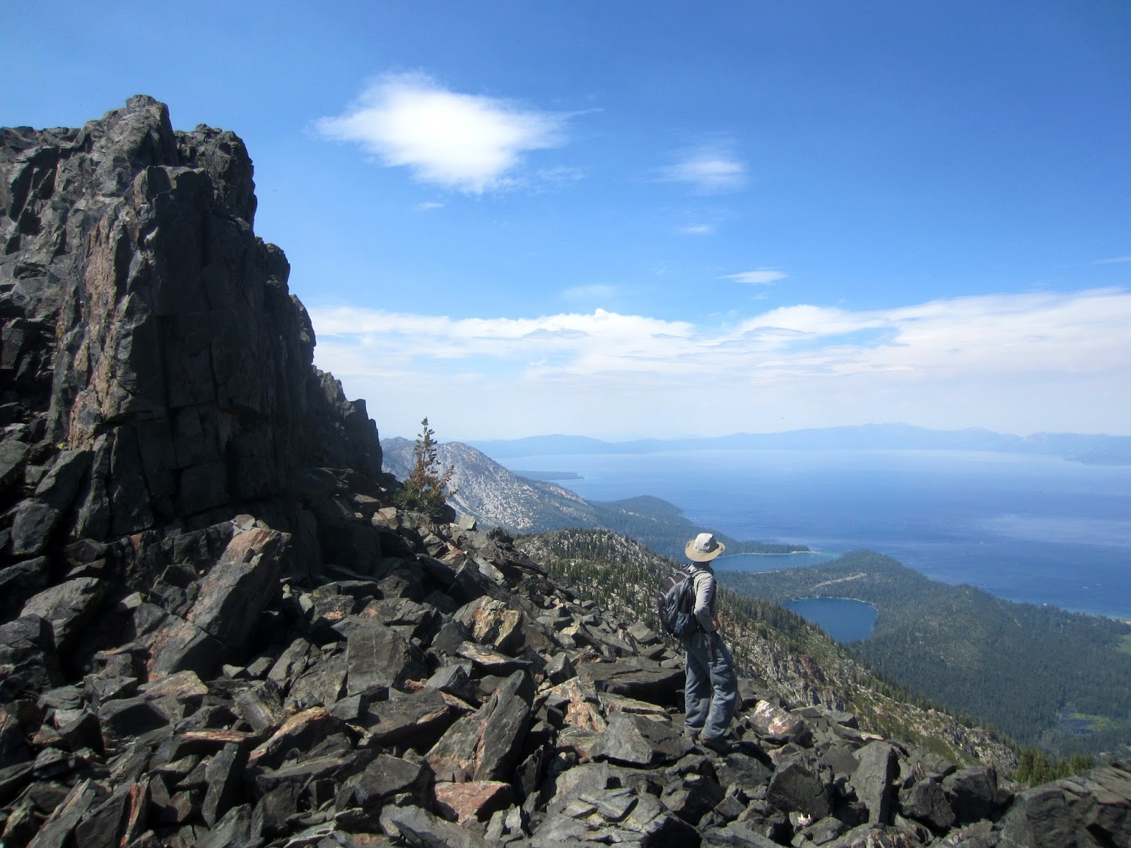 В субботу мы могли бы сразу вернуться домой, но решили не торопиться и посмотреть, что представляет собой озеро Тахо и его окрестности. Для многих оно ассоциируется с горнолыжными курортами, но трейлов для хайкинга там даже больше, чем спусков. Вокруг озера можно обойти по 165-мильному Tahoe Rim Trail. Но мы выбрали посильный нам путь от Glen Alpine Trailhead до вершины Mount Tallac (6 миль в одну сторону = 6 часов туда-обратно).