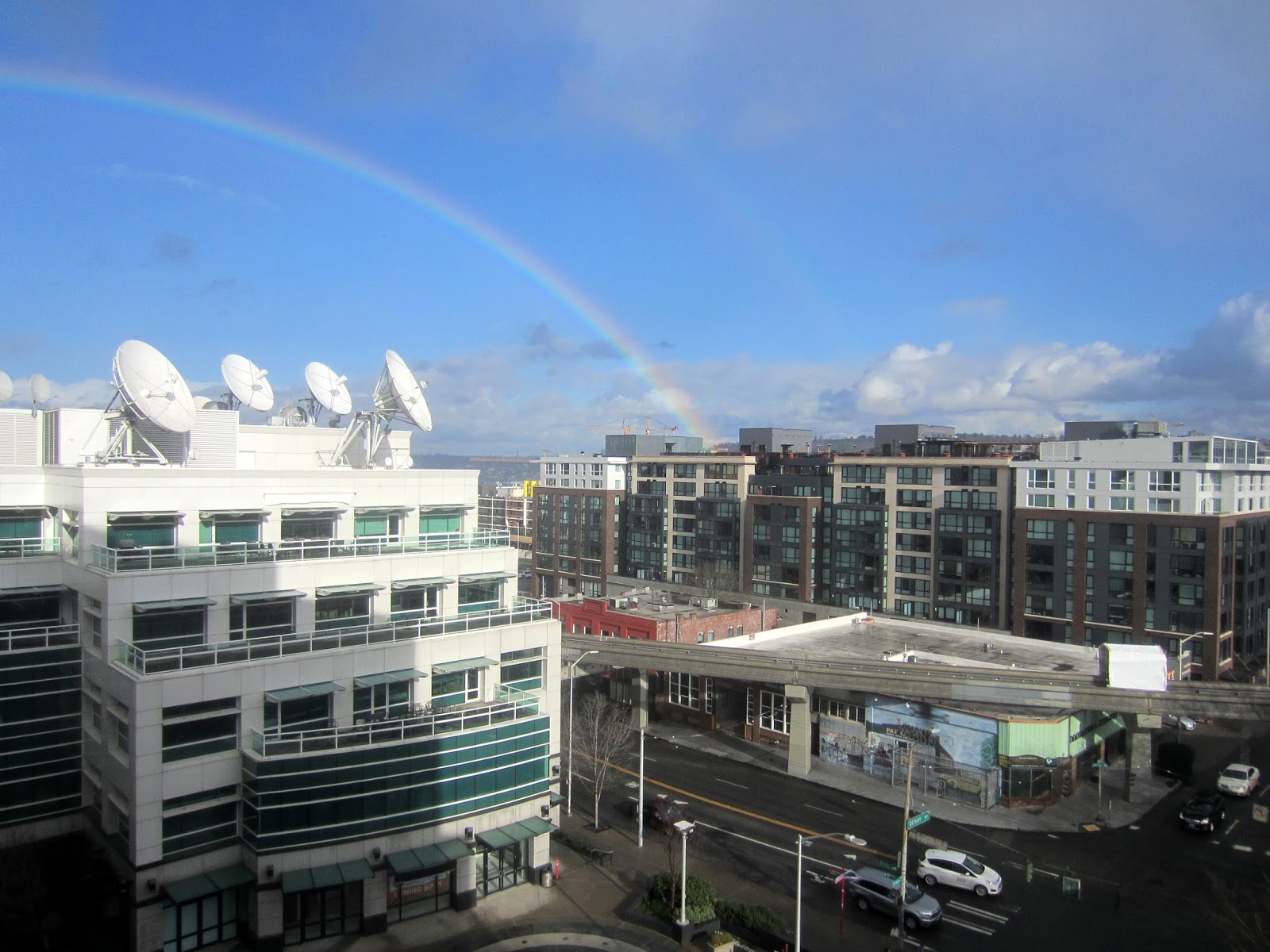 Feb. 5th, 2016 03:21 amЧто мне нравится в новой квартире - за окном постоянно что-то происходит. Не только новогодний фейерверк. Дождь прошел - радуга появилась: