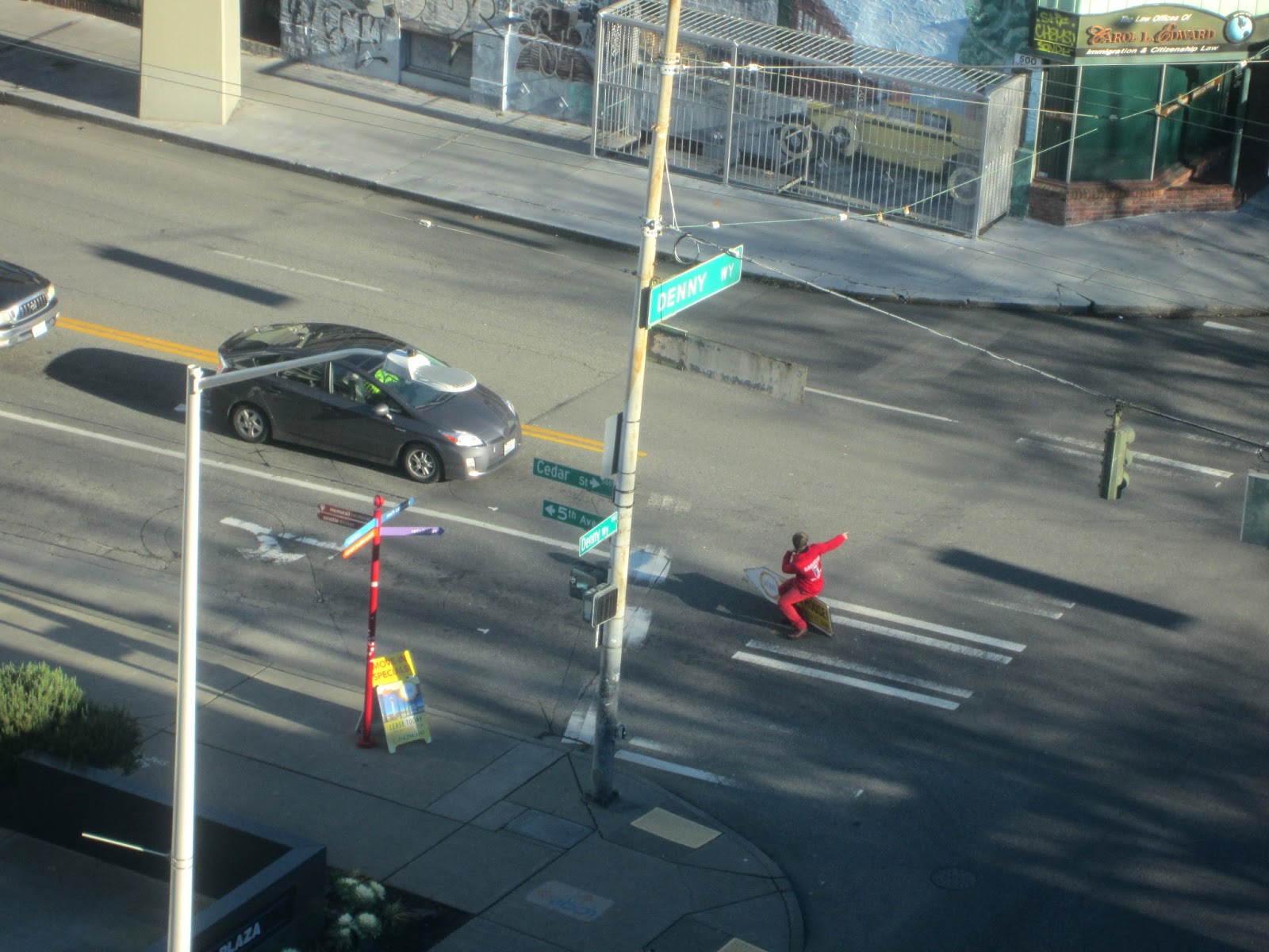 Постепенно выучиваешь, как и куда они мчатся по Denny Way. Но однажды вечером сирены не затихали, мы подошли к окну и сквозь дождевую завесу наблюдали, как машины сгрудились на перекрестке 4-ой авеню и Денни-вэя: