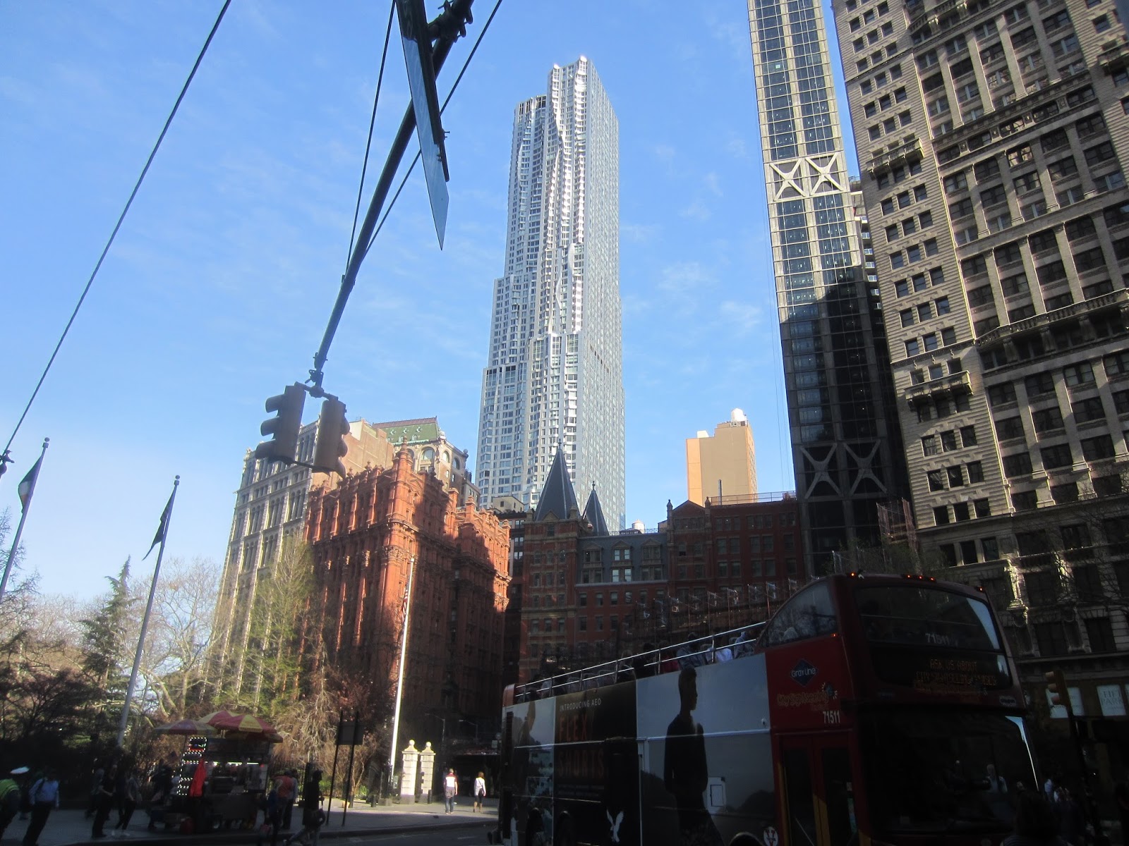 Но, конечно, нас интересовали здания двух главных звезд современной архитектуры. Во-первых, 8 Spruce Street Фрэнка Гери (в Вики посмотрел, что он родился 28 февраля 1929 года, на 4 дня раньше Бернарда Хайтинка; хотя с архитекторами сейчас не поймешь, что они делают сами, а что делает бюро молодых инженеров и дизайнеров).