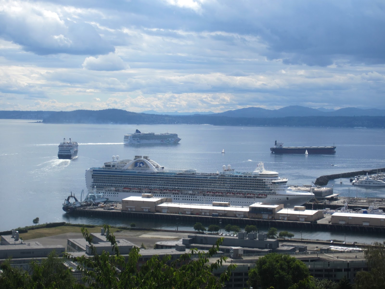 Aug. 10th, 2016 02:25 amСиэтл - город портовый, и, гуляя вдоль берега, невозможно не заметить огромные лайнеры, которые с мая по сентябрь плавают в недельные круизы на Аляску. Вооружившись расписанием круизов из Сиэтла на 2016, я довольно быстро запомнил, когда и откуда они отплывают, и даже могу визуально опознать некоторые корабли.