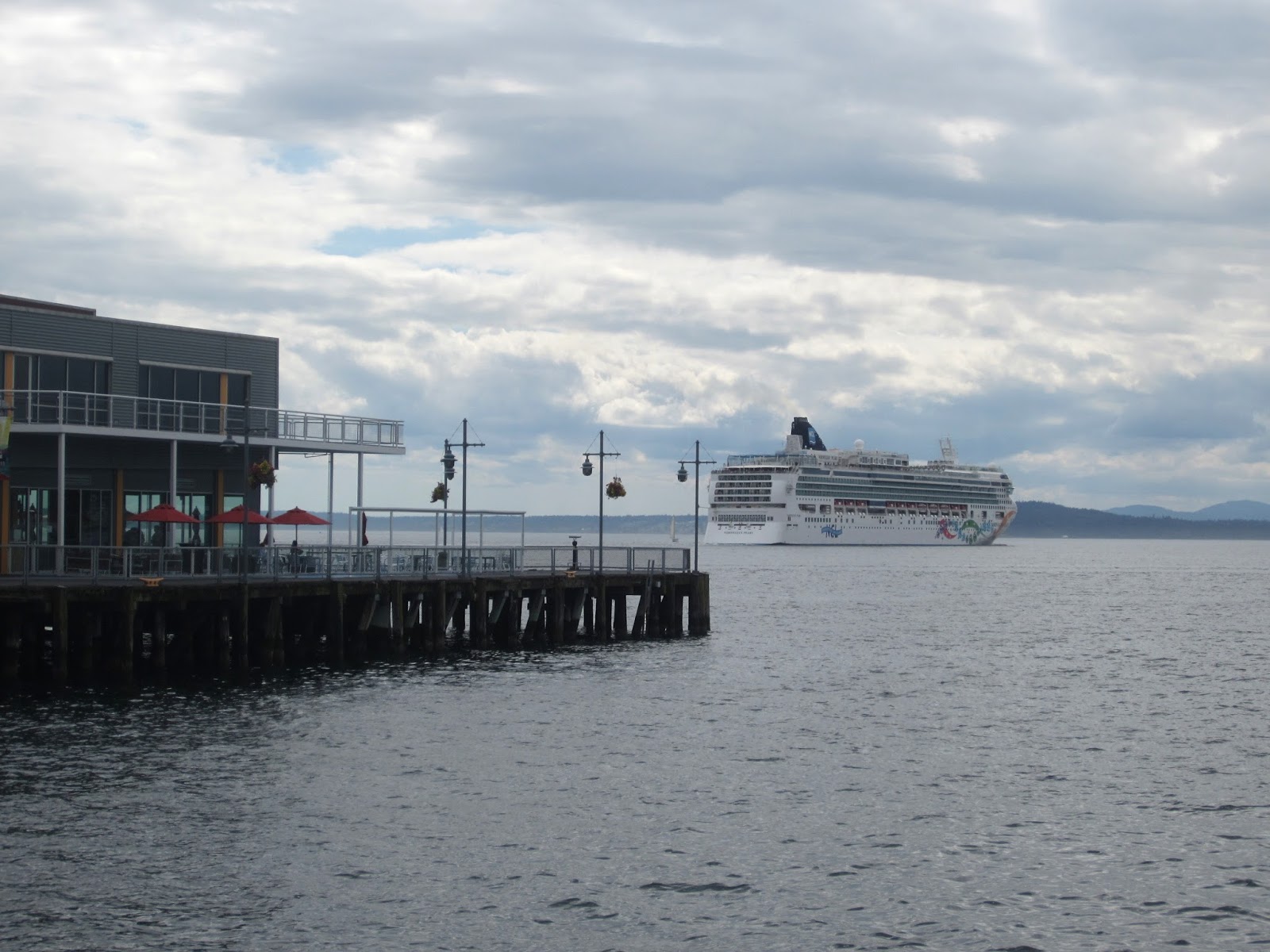 Это поплыл Norwegian Pearl. Отправление в 4 часа каждое воскресенье от 66 пирса в Даунтауне - совсем недалеко от нашего дома.