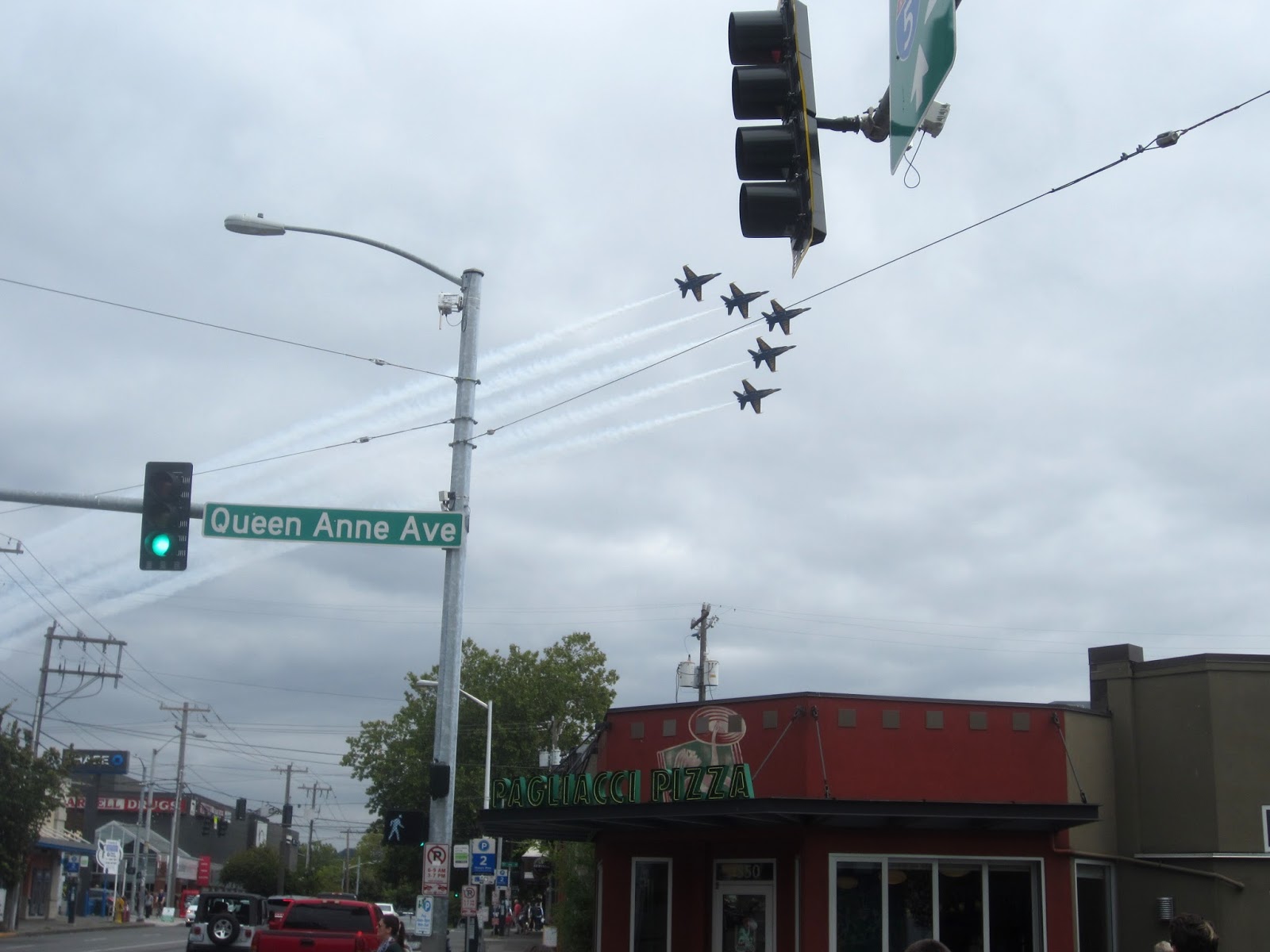 Вообще-то Blue Angles - это 6 реактивных самолетов, но в этом июне один разбился вместе с пилотом во время подготовки к шоу в Теннесси, поэтому до Сиэтла добрались только пять.