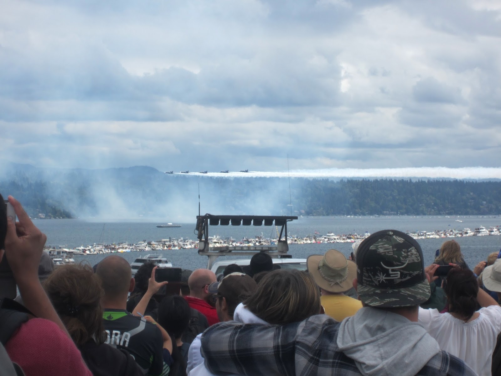 В субботу-воскресенье к основному шоу погода в Сиэтле испортилась, напозли облака, и Blue Angels летали даже меньше, чем на тренировках. Мы убедились, что с крыши нашего дома ничего толком не увидишь.