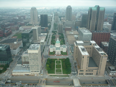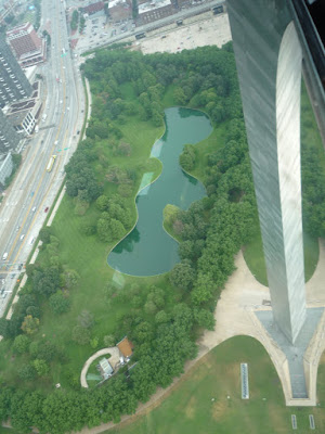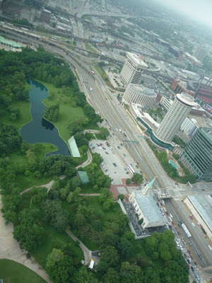 но нам хватило места, чтобы в маленькие окошки рассмотреть с одной стороны Downtown Сент-Луиса,а с другой мосты через Миссисипи и противоположный иллинойсский берег.