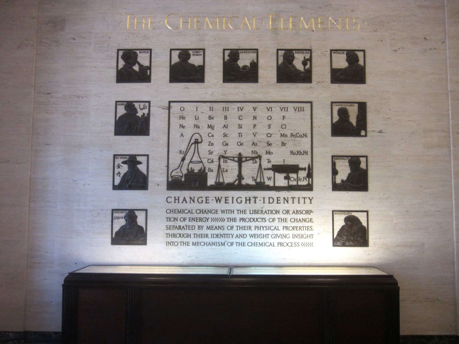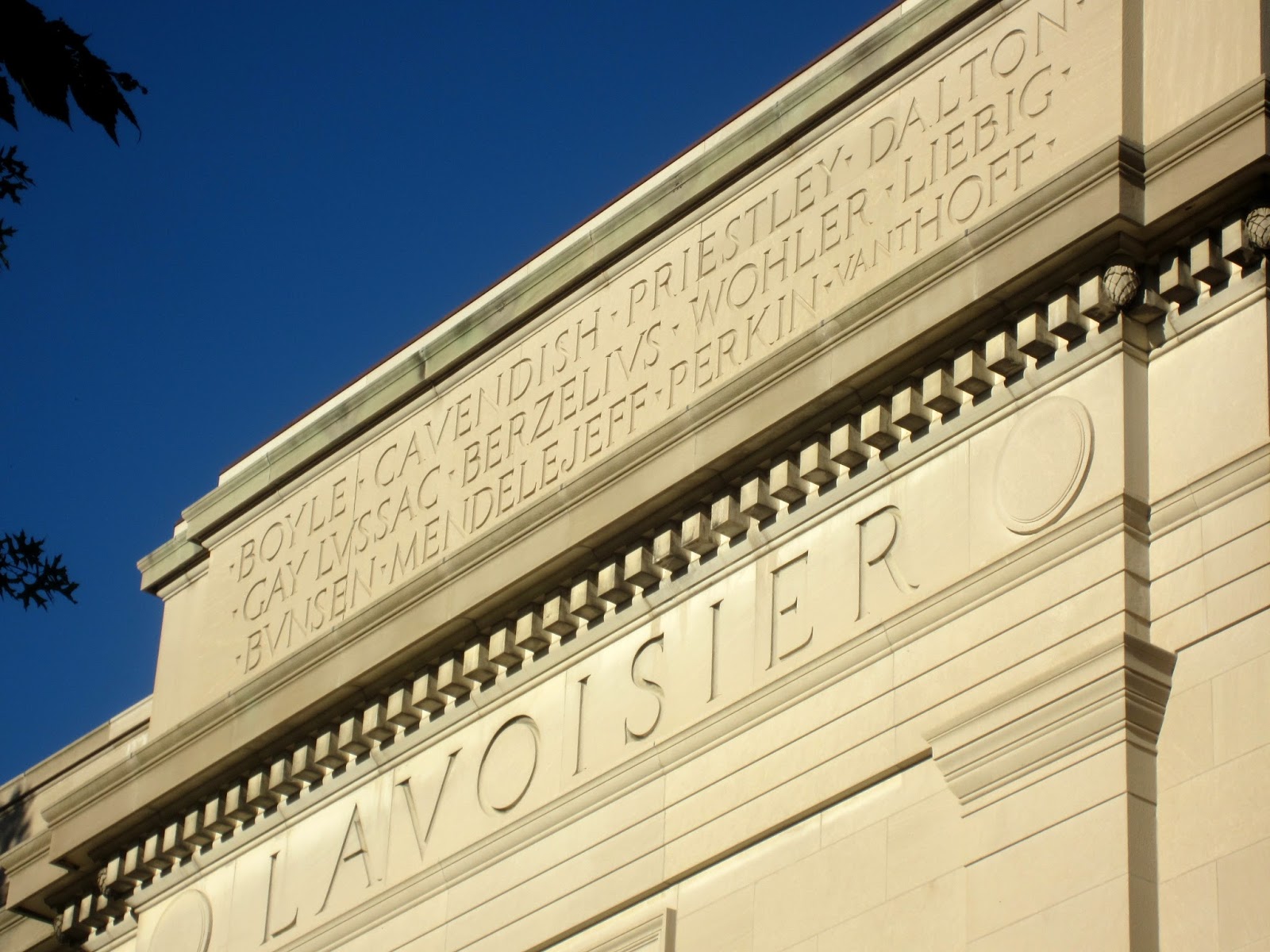 Вокруг газона расположился целый ансамбль классической архитектуры (архитектор William W. Bosworth, те самые 1913-1916). На стенах павильонов выбиты имена великих (на то время) ученых, среди которого из наших я увидел только Менделеева: