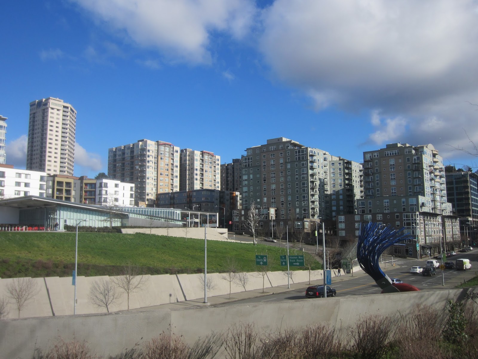 Jan. 27th, 2017 11:32 pmЯ уже понял, что мне хочется жить рядом с таким маршрутом длиной полчаса-час, по которому не надоедало бы ходить каждый день, в любое время года. Чтобы там была и “большая вода”, и горы, и деревья, и поезда ездили, и самолеты летали. К счастью, в Сиэтле недалеко от нашего дома есть не только Seattle Center, но и Olympic Sculpture Park.