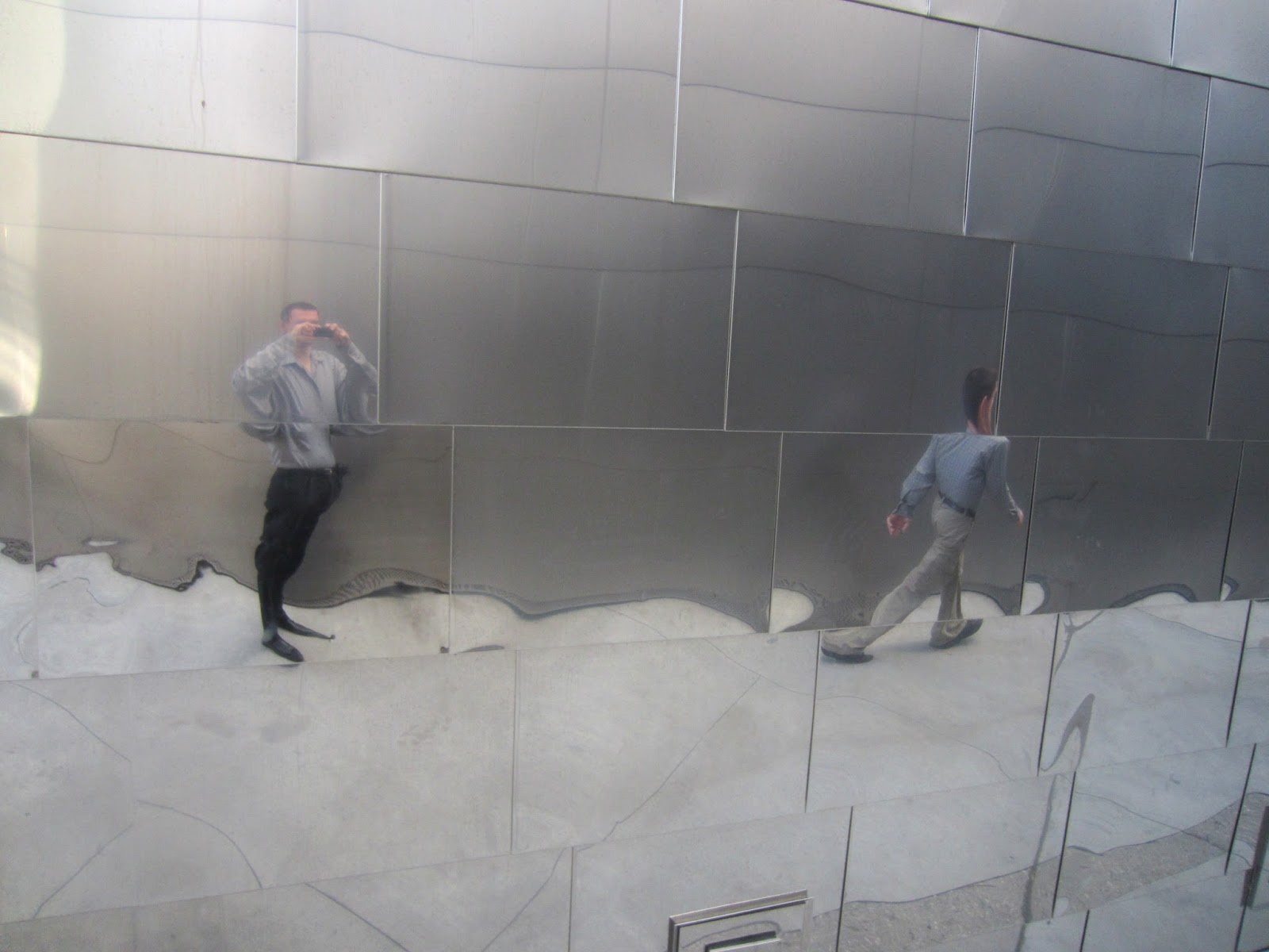Я уж не знаю, символизируют эти стальные листы паруса или рассыпавшиеся ноты, но изначально они служили хорошими зеркалами, собирающими концентрированные пучки солнечных лучей на соседних зданиях, пока Гери все не подправил.