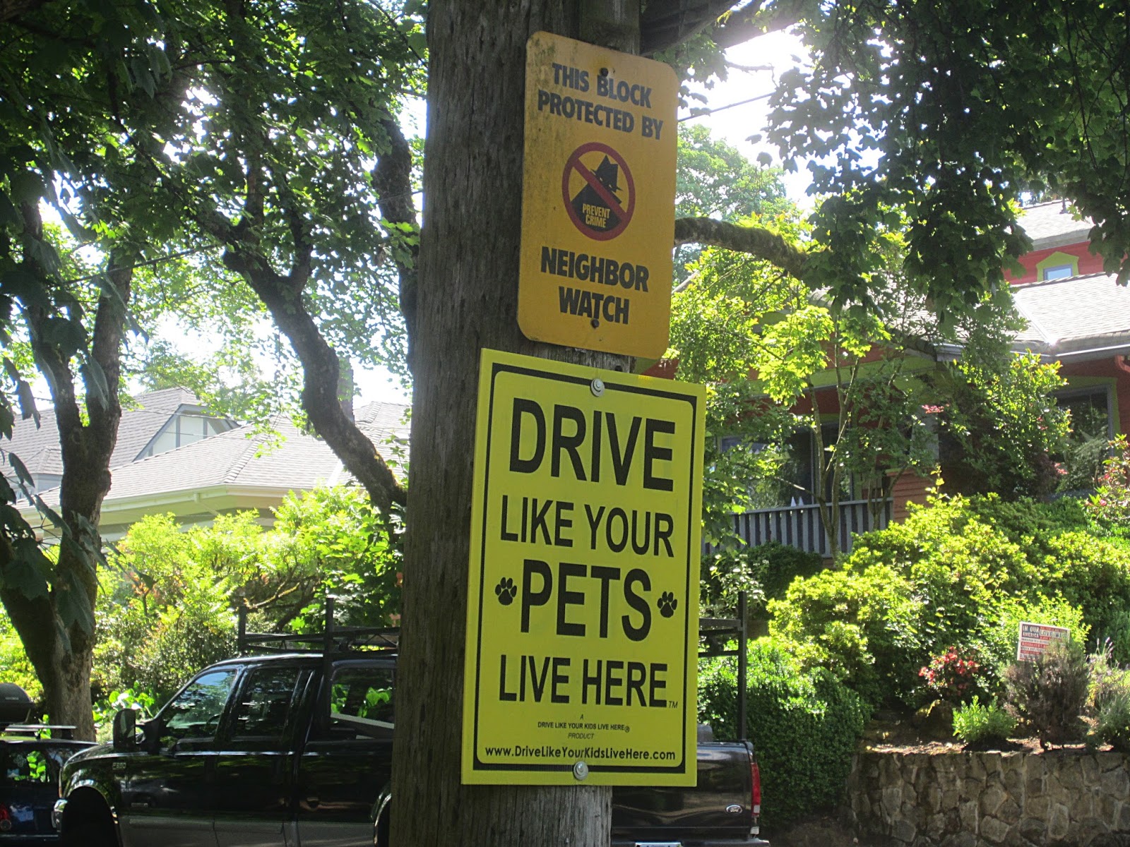 13. Или вот еще из поездок - Портленд, Орегон - на тихой улице призывают водить машину так, будто ваши домашние животные живут здесь: