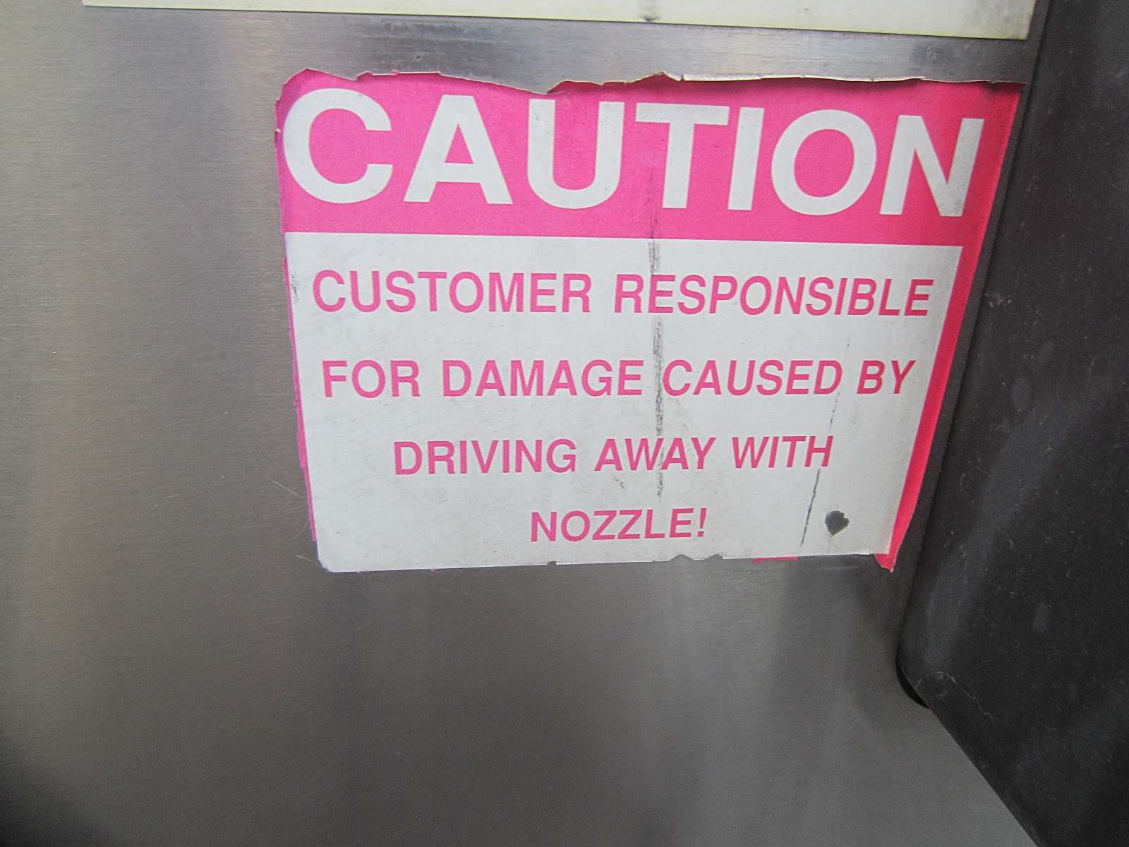 Я видела один раз, как одна мадам задумчиво уехала с заправки вместе с nozzle'ом. И она почти два блока проехала под совершенно невыносимое пиликание ну просто всех в ее адрес, пока ее вдруг не осенило задуматься, что пиликают ей.