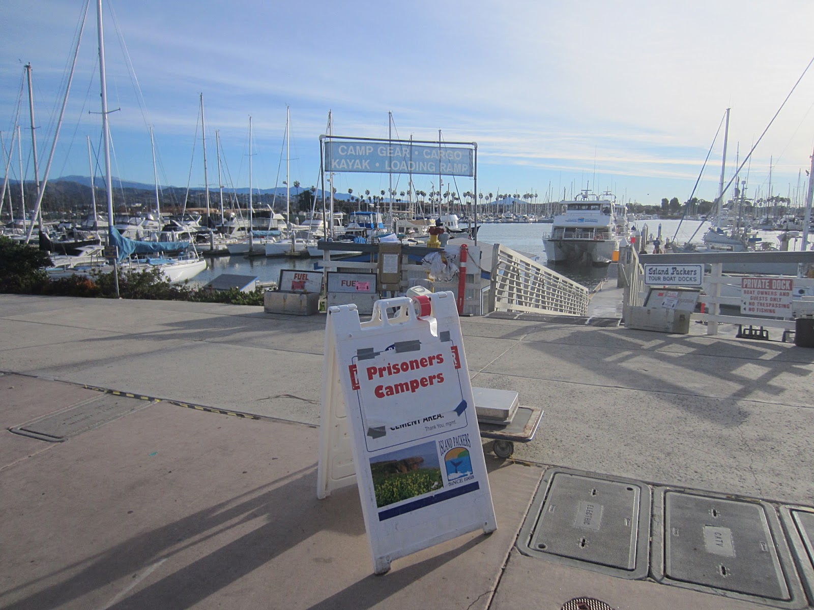 Можно подумать, что на корабль собираются грузить не только туристов, но и заключенных, но Prisoners в данном случае - название гавани, куда мы плавали. Знак поставили, чтобы не перепутали с другим направлением - Scorpions. Но название Prisoners действительно взялось от заключенных, которых когда-то хотели селить на Santa Cruz Island.
