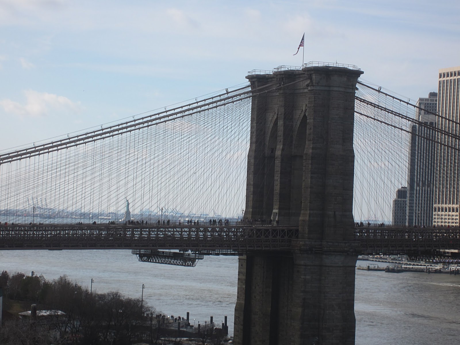 За Бруклинским мостом проглядывает Статуя Свободы: