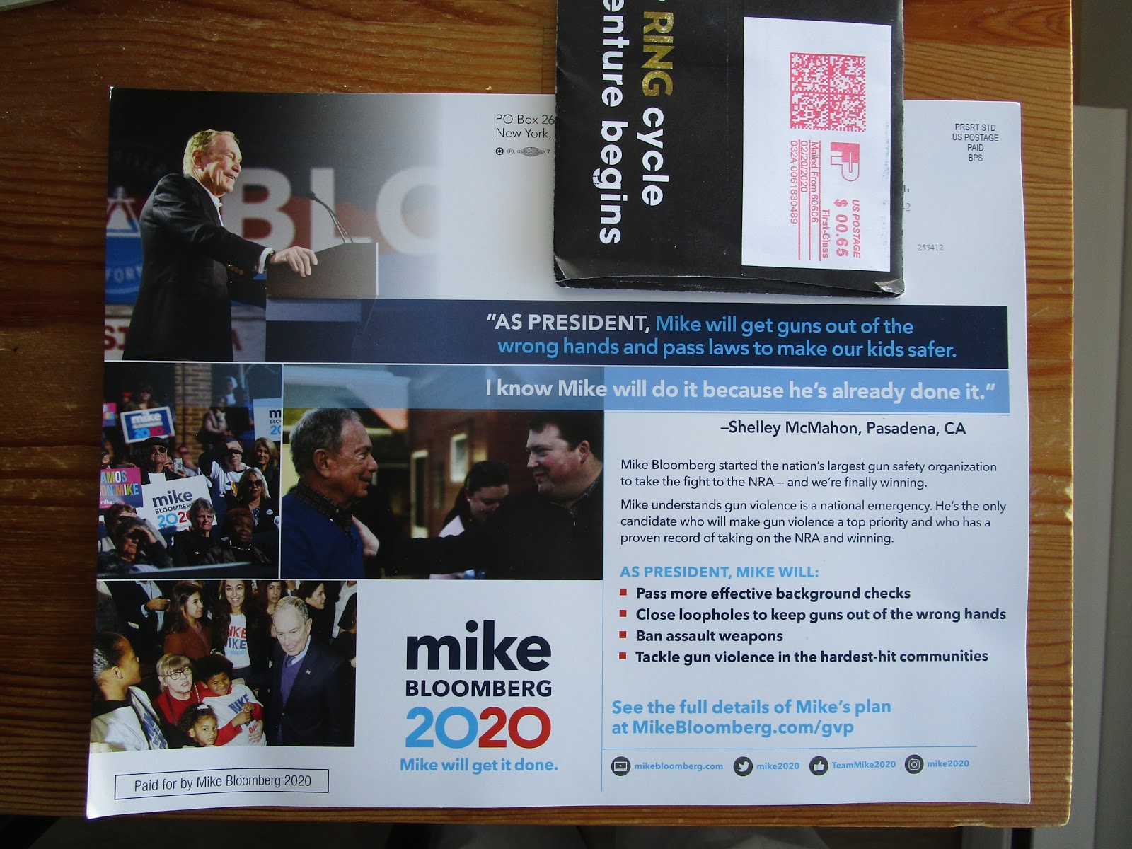 Одно время я раздумывал насчет Блумберга, но он был скучен на дебатах и закидал почтовый ящик макулатурой. Хотя бы придумали какой-то интересный дизайн, чтобы глаз цеплял и хотелось прочитать, что он там обещает: