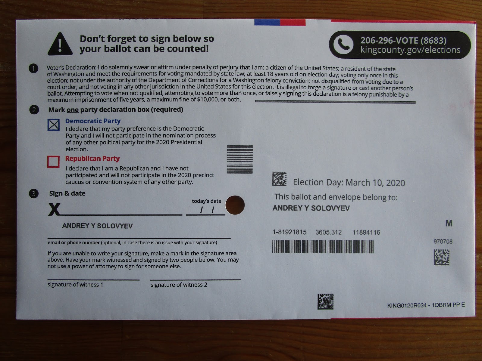 Многих напрягало, что этот партийный выбор рядом с твоим именем, станет общедоступной информацией. Мало ли, пойдут по квартирам стыдить сторонников Трампа. Потому что у респов выбор из одного кандидата. Я такое не люблю. Да, мог бы вписать сенатора-либертарианца Рэнда Пола или отметить Трампа – послать ему сигнал, что в самом центре Сиэтла у него есть сторонники. Но респы настолько на Сиэтл не рассчитывают, что решат, что это местные леваки перекурились и троллят своих друзей.