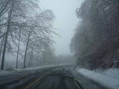 Наступил Christmas Day, самый выходной из всех американских выходных. С утра моросил дождь, а машина покрылась коркой льда. Запихнув в себя скудный суперзавтрак, мы отправились дальше по I-81. Дождь не прекращался. Сугробы на окрестных склонах подтаивали. Планов мы решили не менять. По холмистому боковому шоссе мы отправились к Grayson State Park, в котором расположена основная парковка для желающих забраться на Mt. Rogers. На официальном сайте парка значилось, что он открыт с 8 утра до 10 вечера. Про режим работы на двадцать пятое декабря не было ни слова. Так что слабая надежда, что нам удастся проехать в парк и найти место для парковки сохранялась.