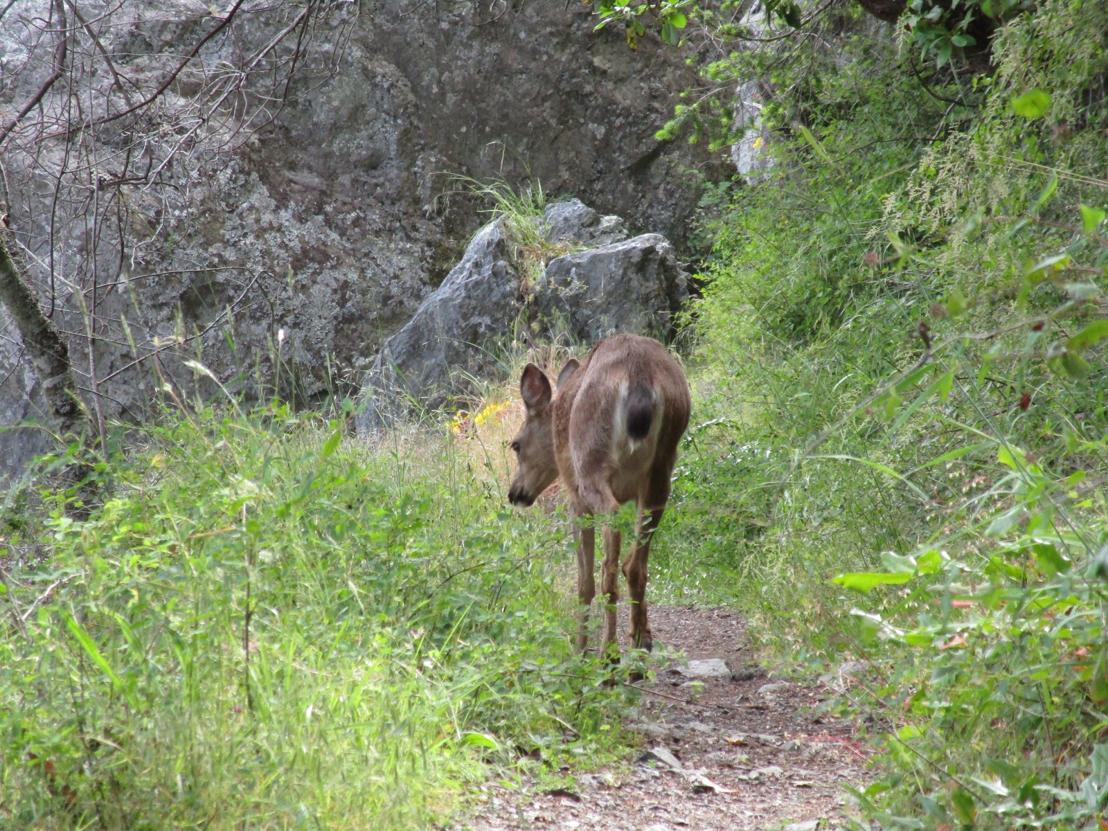 Зато нашу тропу преградил совершенно непугливый олень, который невозмутимо обедал, пока мы ждали, что он уступит нам дорогу.