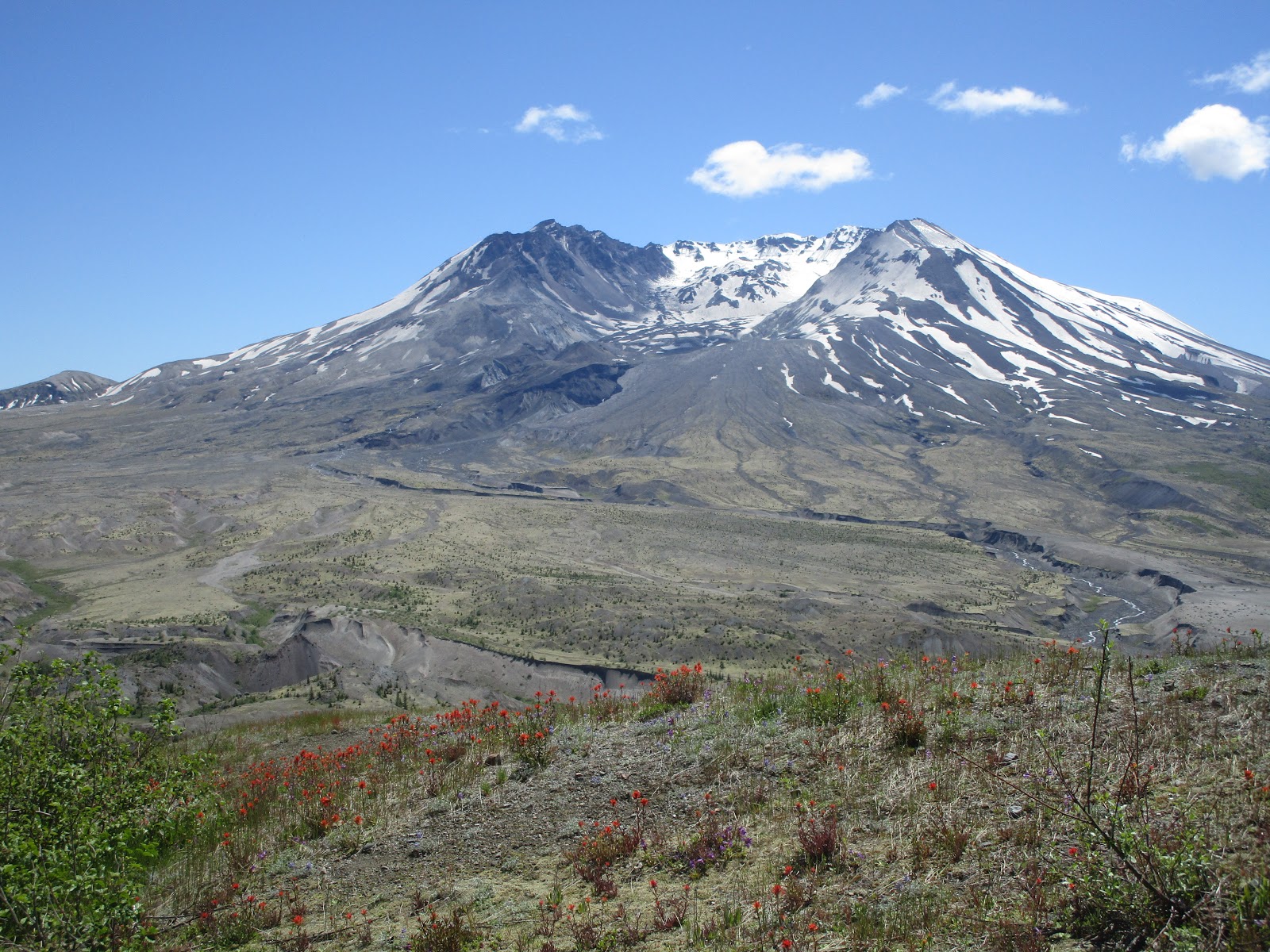 В конце мая ехать на Сент-Хеленс было рано: на тропе ещё лежал снег. А сейчас самое время. Пик цветения будет ещё через неделю-две, но цветов вдоль тропы хватает для любования яркими красками на фоне вулканического пейзажа.