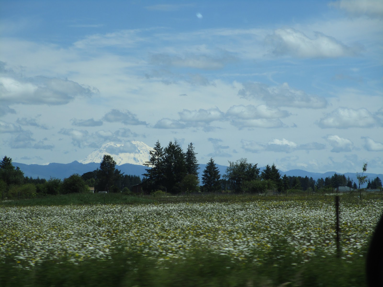 Четвёртый вулкан – гору Рейнир – заслоняет соседний хребет, но он тоже неподалёку, и мы его видели с разных сторон из машины по пути к Сент-Хеленс.