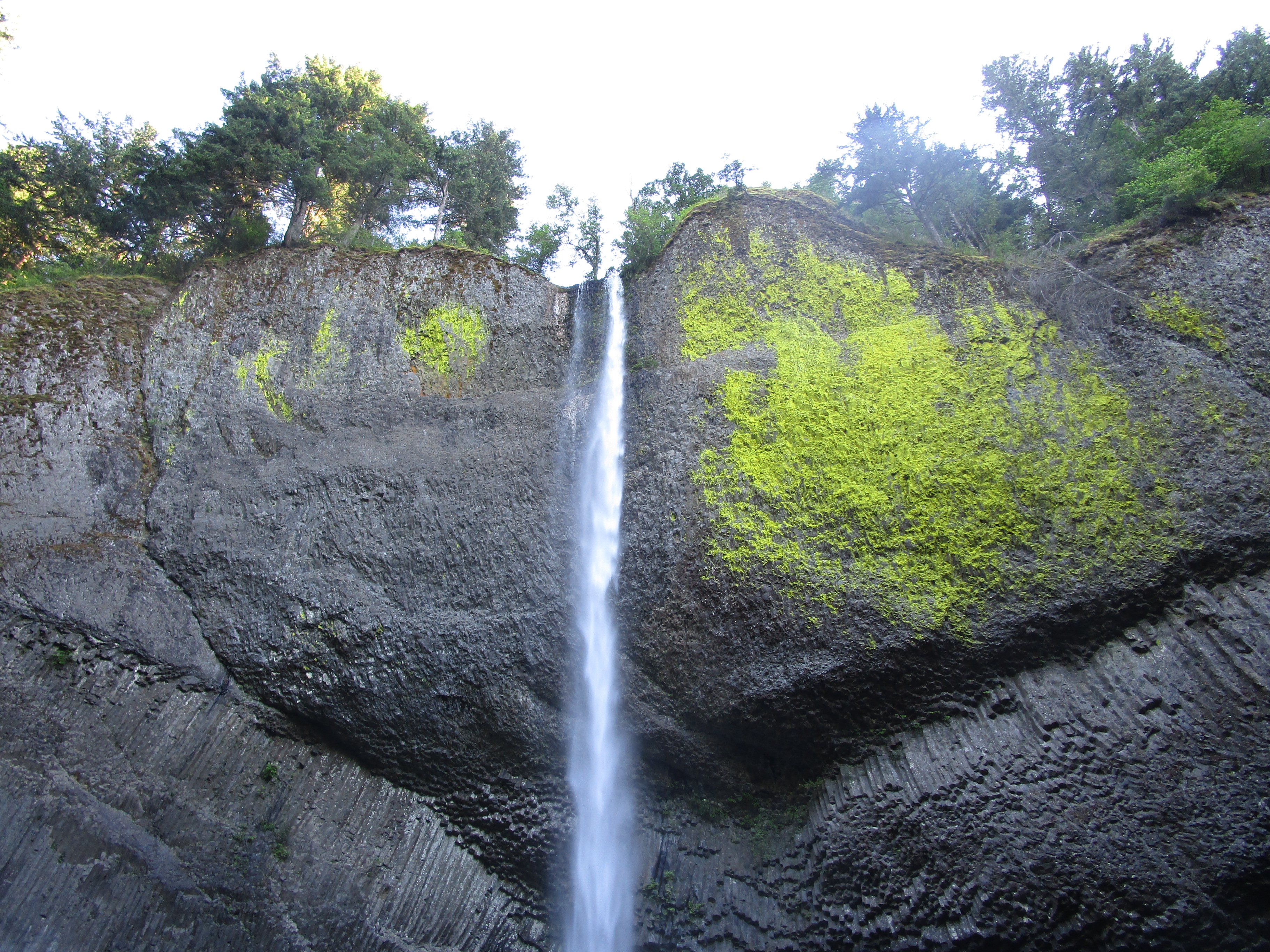 В этот четверг мы уже слишком устали для больших трейлов, но до заката было ещё далеко, поэтому посетили несколько небольших парков с водопадами. Но чем ниже садилось солнце, тем сложнее было их фотографировать на мою мыльницу. Вот водопад Bridal Veil (Фата невесты) посреди мшистого леса: