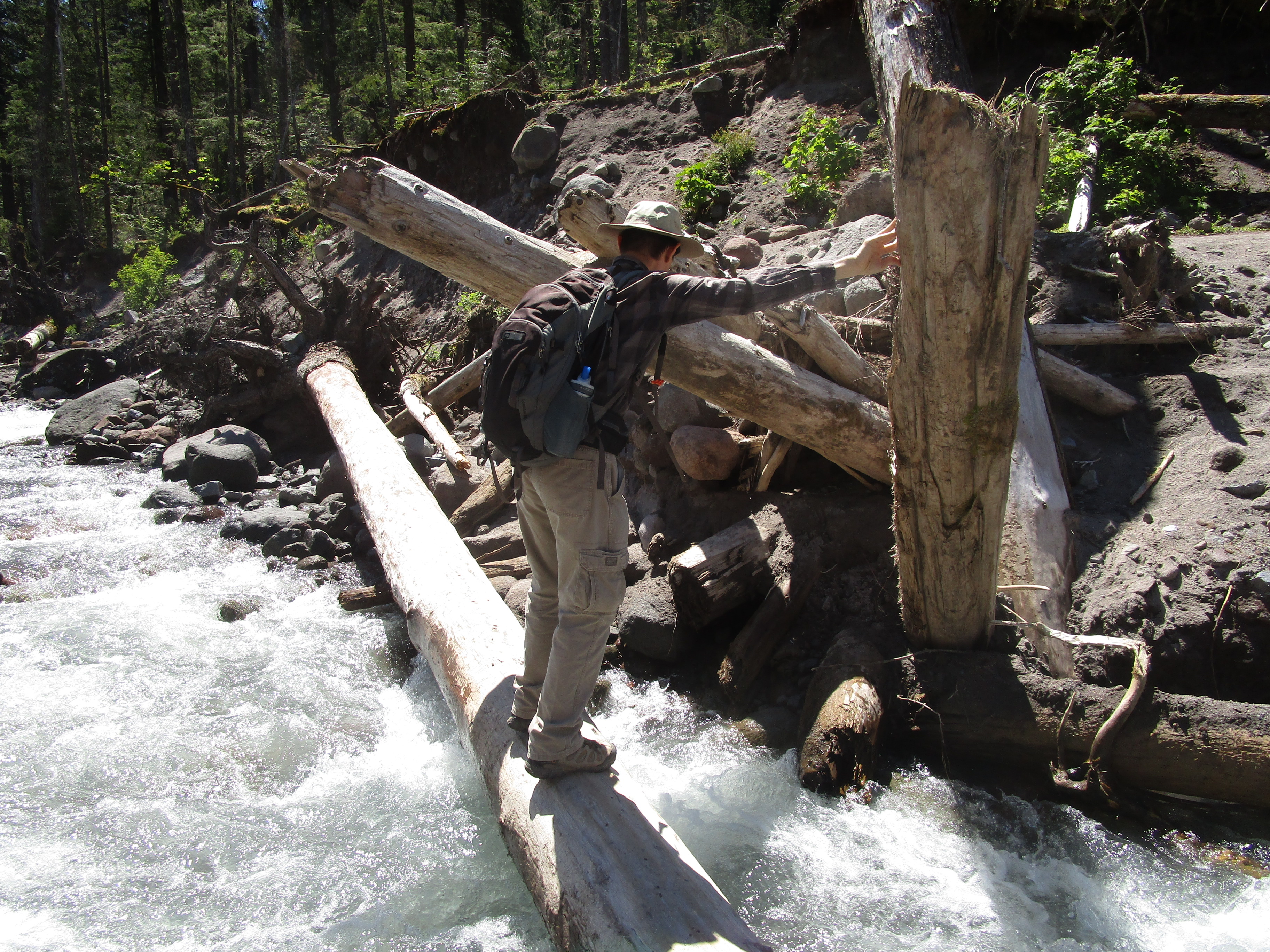 Мой брат обнаружил, что проще всего пересечь реку по другому стволу, пройдя по нему туда-обратно несколько раз. Некоторые люди переползали по этому дереву, сидя и пихая вперёд себя пугливых собак:
