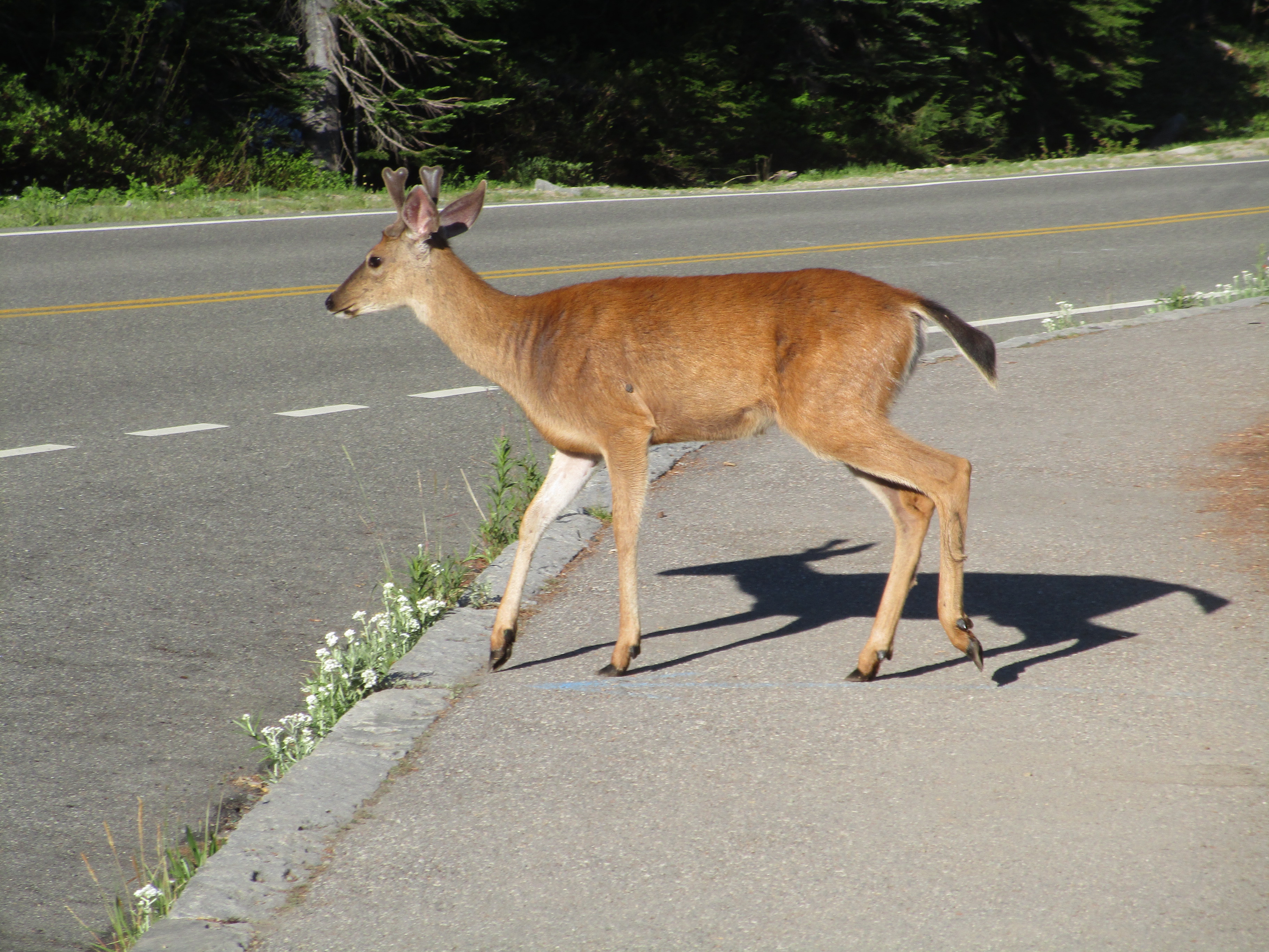 Но эту фотографию мы сделали уже утром в пятницу. Тогда же мы там увидели бесстрашно перебегающего дорогу оленя: