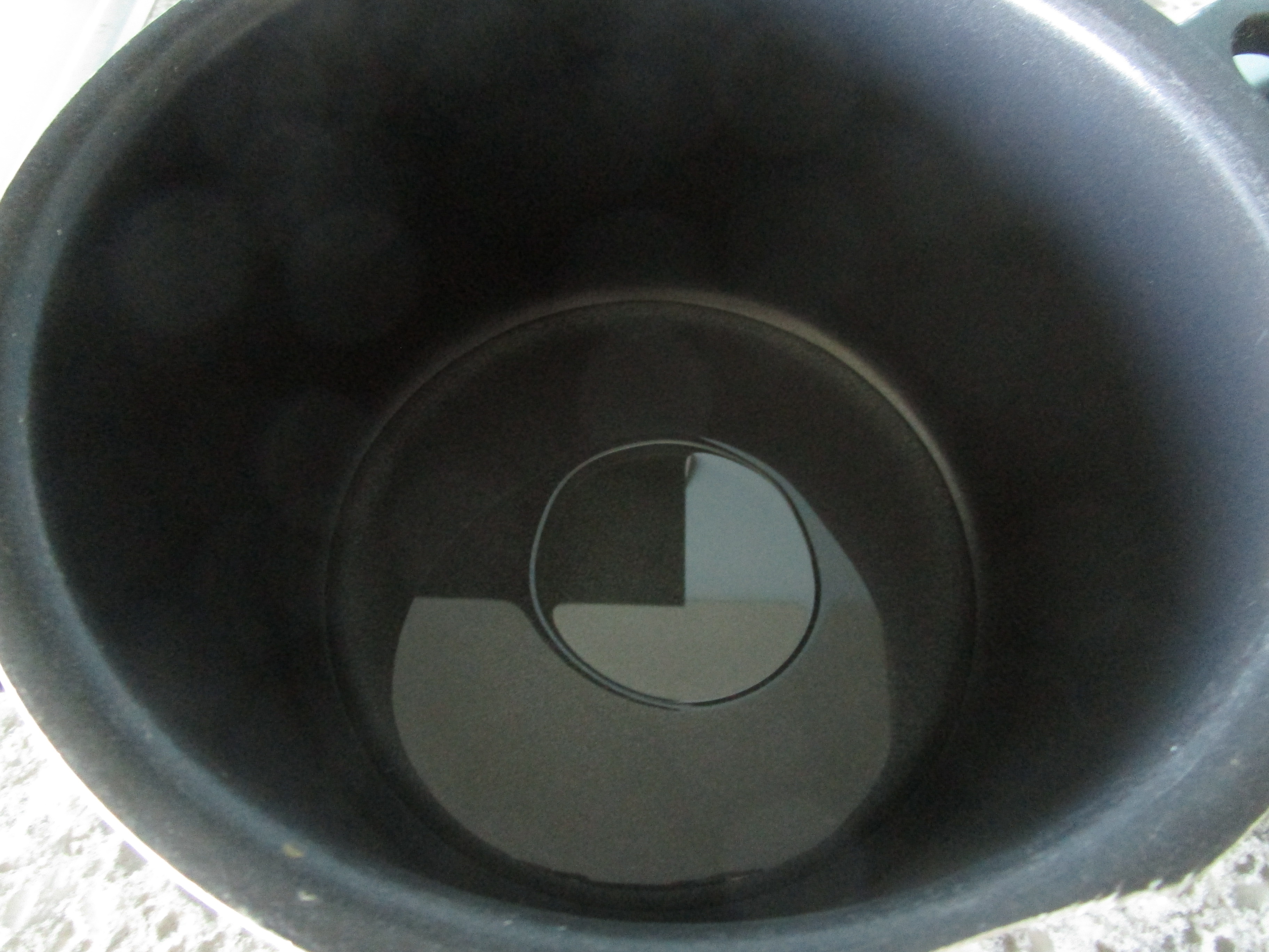 Наливаю воды, чтобы она покрыла дно «большой чёрной» кастрюли, добавляю немного растительного масла и ставлю на плиту, регулируя нагрев, чтобы всё равномерно кипело: