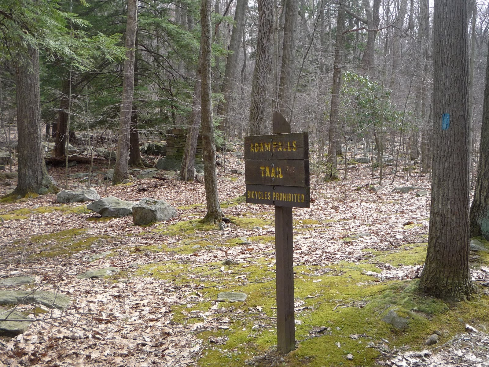 Выехали не так чтобы рано, около половины одиннадцатого, заправились на GetGo ($2.85/галлон был скинут до $1.45) и по Pennsylvania turnpike (I-76/70, $2.95) без приключений добрались до места. Чтобы размять ноги, остановились у полянки для пикников Adam Falls (Водопады Адама). Где-то рекомендовалось пройти петлю длиной одну милю к этим самым водопадам. Что оставалось делать – пошли.