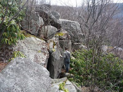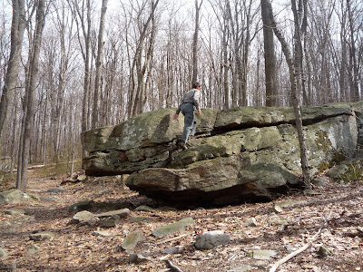 В горах еще ничего не зацвело, только самые ранние цветы начинают пробиваться и распускаться. Зато уже нет снега. На такой осенне-весенний голый аппалачский лес мы уже насмотрелись за время наших предыдущих поездок: Shenandoah и Cuyahoga. В Linn Run State Park'e хотя бы есть выходящие наружу камни и валуны, по которым, за отсутствием других развлечений, можно попрыгать и полазить.
