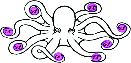 Недавний пример: осьминог, схвативший восемь Gd3+ шаров, символизирует дендримерный лиганд, удерживающий восемь ионов гадолиния.