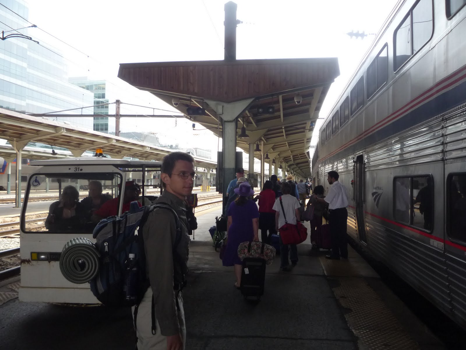 В ту ночь мы в полвторого ночи легли спать, а в 3.45 уже встали. Как оказалось, не было никакого смысла прибывать на вокзал настолько заранее. К тому же поезд опоздал минут на двадцать. На платформе на посадку собралось пассажиров двадцать пять. Им-то какая выгода ездить Amtrak'ом? Приехало в Питтсбург, кстати, из Чикаго, Кливленда или откуда там еще человек пятьдесят. На входе в поезд должны были спрашивать удостоверения личности. Я даже свой загранпаспорт на случай прихватил, но смотрели только наличие билета.