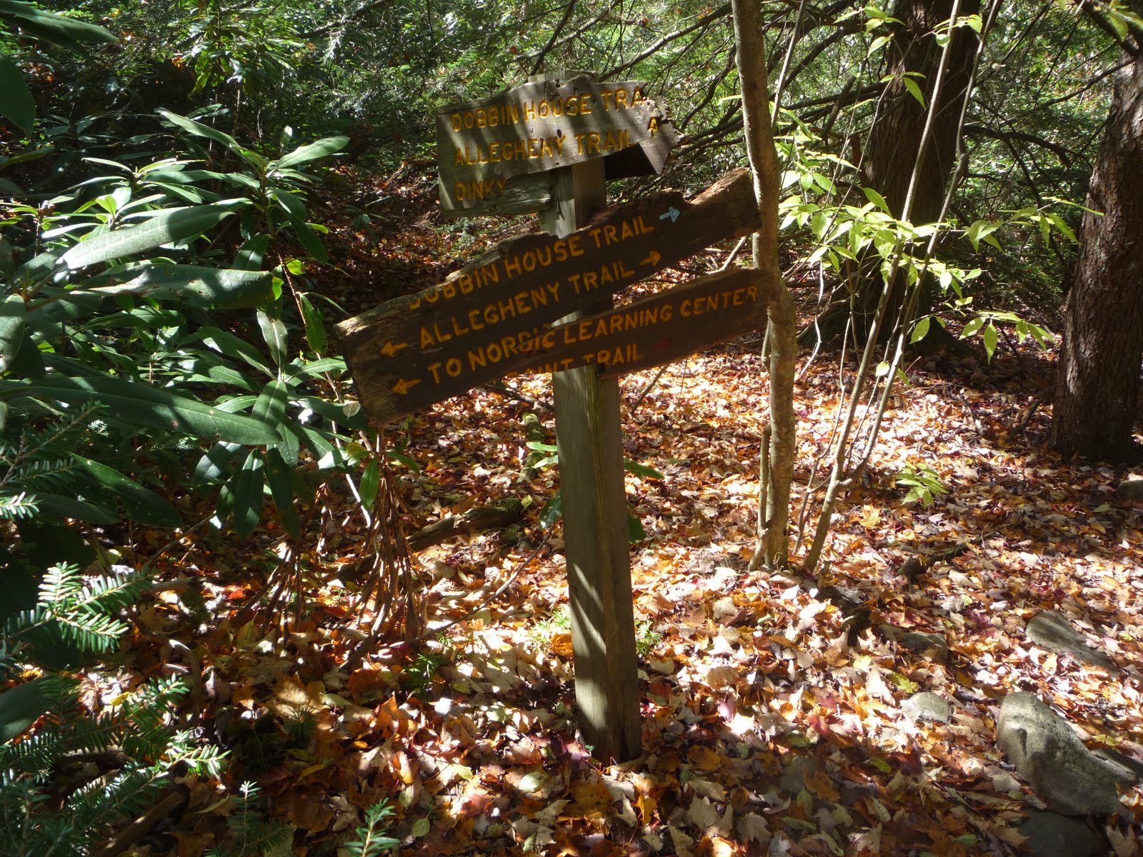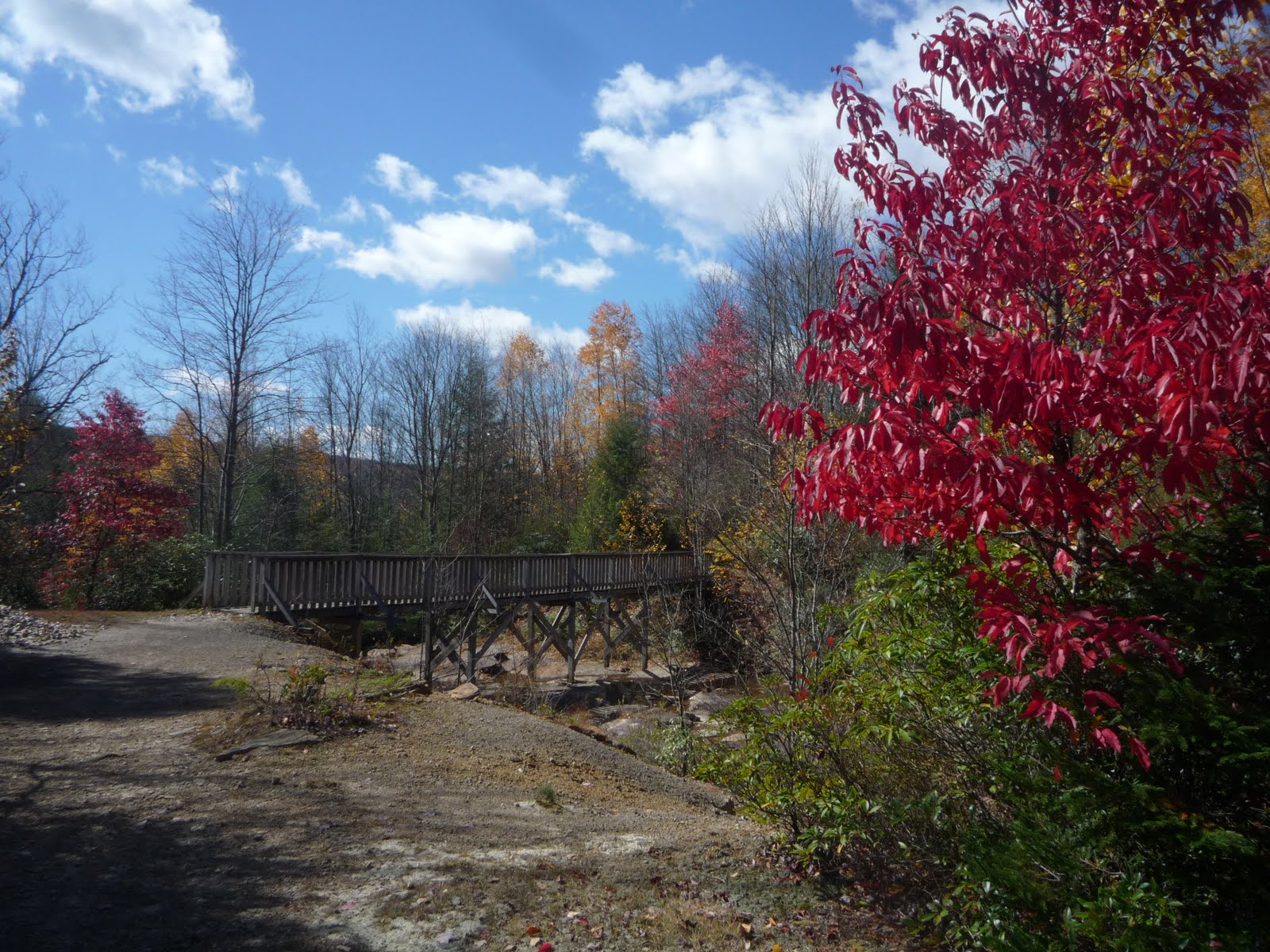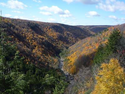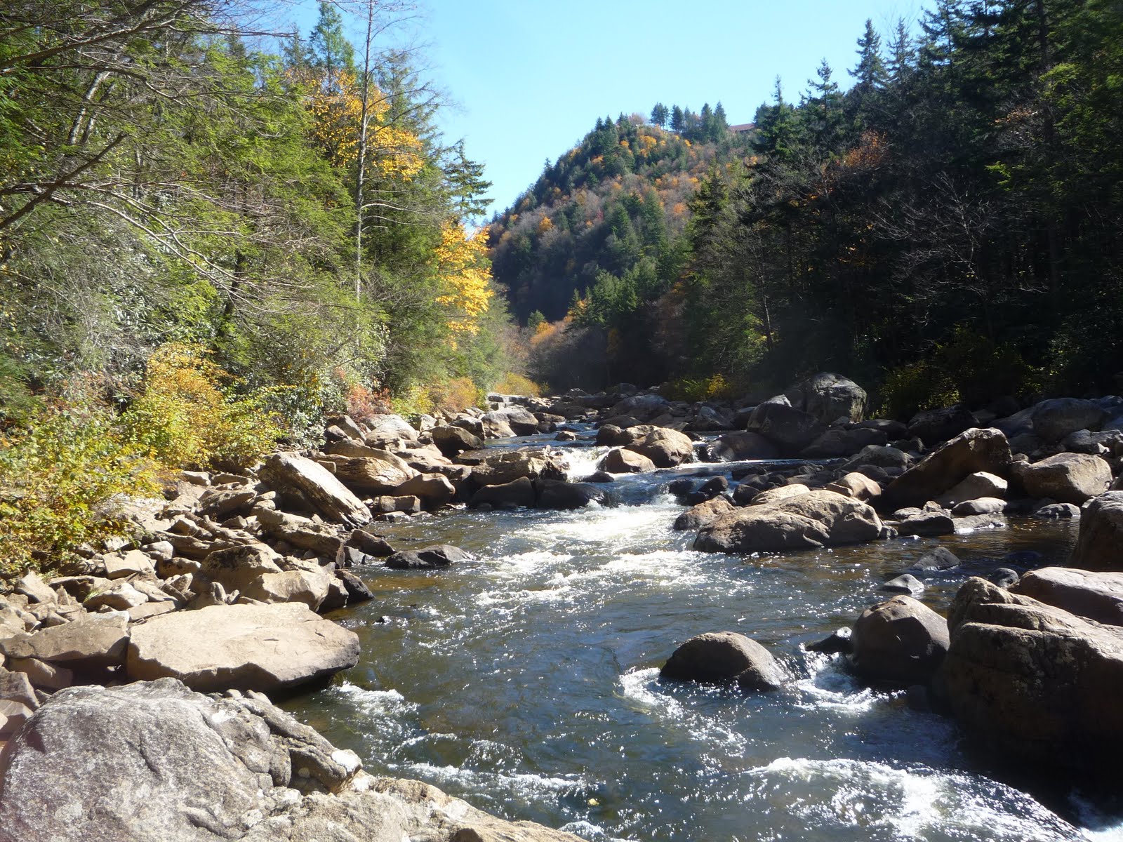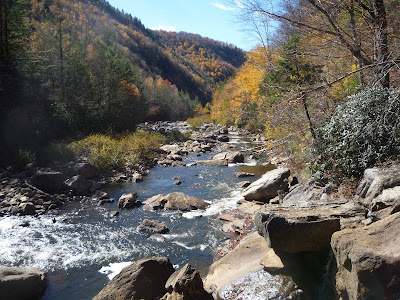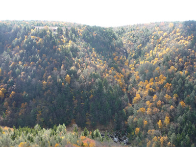 Высота над уровнем моря в парке уже около 1000 метров. Потому несмотря на то, что в Питтсбурге еще все наполовину зелено, деревья в Blackwater Falls’е уже полностью сбросили желтые и красные листья. К тому же там чуть ли не половина деревьев хвойные. Надо бы было на неделю пораньше приехать: было бы еще красивее.