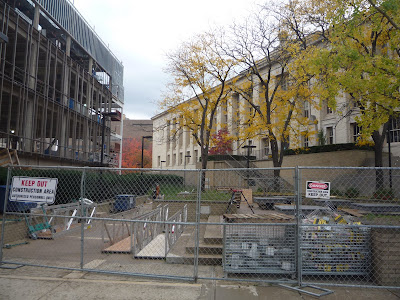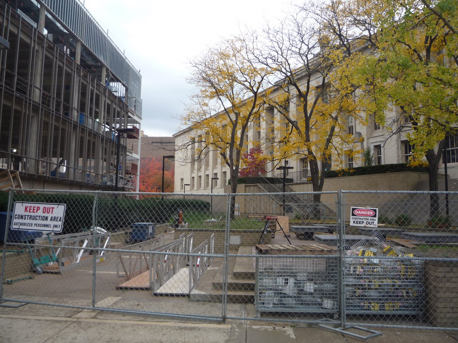 Летом нас уже эвакуировали. Тогда что-то сработало из-за строительства новых лаб. В этот раз пошли слухи, что кто-то что-то вылил в раковину и запах пошел такой, что профессор дернул сигнализацию. Обычно в нарушение правил эвакуации химики не расползаются далеко от выхода, но в понедельник накрапывал дождь, и все постепенно переместились в соседний Eberly Hall.
