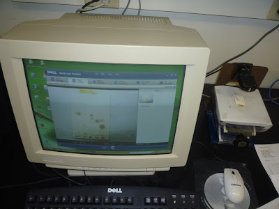 Пластинки после проявления (в последнее время я использую для этой цели почти исключительно подкисленный раствор ванилина в метаноле), если на них видны важные пятна, принято фотографировать для истории, то есть для электронного лабораторного журнала. Хотя и разрешается перерисовать от руки. Но проще все же сфоткать, для чего у нас есть отдельный компьютер (слишком старый для других дел) с подключенной к нему старой веб-камерой и специальным столиком для пластинки. В софтине на кнопку нажал – и готово. Останется дома довесить инфу о пятнах и условиях, перевести в pdf и приложить к соответствующей странице.