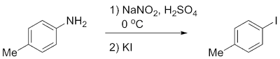Так, с грехом мелкого жульничества пополам, первый коллоквиум был преодолен. Теория на втором охватывала так называемые «изогипсические реакции», то есть такие, в которых не происходит изменения степени окисления. Я уже забыл, как я его сдавал. Вот как сдавал третий коллоквиум немного помню, хотя конкретные вопросы уже растворились в глубинах памяти. С теорией у меня проблем не было, так что перейдем к практике. Второй коллоквиум был посвящен ароматическим соединениям. Одной реакцией был синтез через соли диазония, а другой либо нитрование, либо бромирование, либо что-то в том же роде. Мне достался, пожалуй, наиболее простой диазоний – синтез пара-иодотолуола из пара-толуидина. Простой, так как в отличие от бромо- или хлороароматики не надо было предварительно готовить соответсвующий галогенид одновалентной меди. Синтез фенола мне тоже почему-то не нравился. Хотя, на первый взгляд, там можно не бояться гидролиза неустойчивого диазония, но у моих однокурсников фенол пошел хуже всего. Вроде все правильно делали, а продукт, если получался, плавился совершенно не там. Ну, с фенолом это традиционная проблема. Рассказывали, что некогда один студент настолько замучился с этим синтезом, что принес из лабы покупной фенол и выдал за свой продукт. Заставили переделывать, так как такой чистый продукт никто в практикуме никогда не получал. Вывод: выходы под и за 100% и чистота >99% не всегда полезны. Другие мои одноклассники из других групп, чтобы подогнать выход фенола, крошили в продукт фильтровальную бумагу. На что только не идет студент, чтобы побыстрее начать делать новые интересные синтезы.