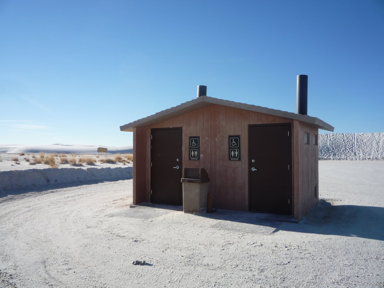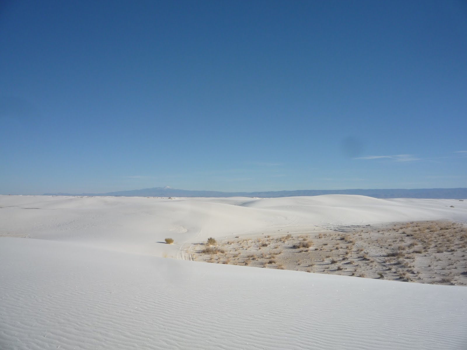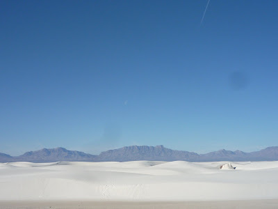 Утром после Bright side завтрака мы проехали последние мили по I-10 East, дороге которая вела нас через Калифорнию, Аризону и Нью-Мексико вот уже пятый день. Штат Нью-Мексико запомнился какой-то общей серостью и бедностью по сравнению даже с той же соседней Аризоной. Большой город по имени Las Cruces представляет собой нагромождение белых вагончиков и одноэтажных сараев. Справедливости ради отмечу, что мы не заезжали ни в Альбукерке, ни в Санта-Фе. Единственной целью, намеченной в Нью-Мексико, был White Sands National Monument («Национальный монумент Белые Пески»).