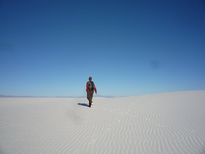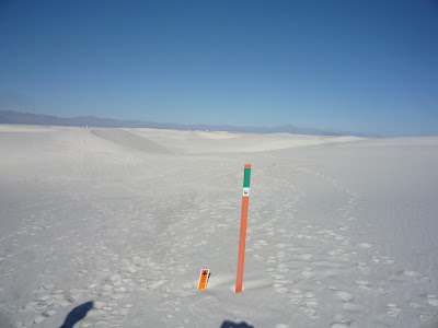 Одну из забав для посетителей составляет катание на санках с дюн. Мы даже шутили по поводу проведения в Нью-Мексико Зимней олимпиады. Но и без санок мы набрали порядочно белого песка в ботинки, пока шли 4.6-мильную тропу до высохшего озера Alkali Flats.