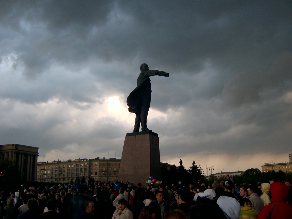 Ближайшей к нашему дому станцией метро была «Московская», где на Московской площади в створе Ленинского проспекта стоял памятник кому? Правильно, Ильичу.