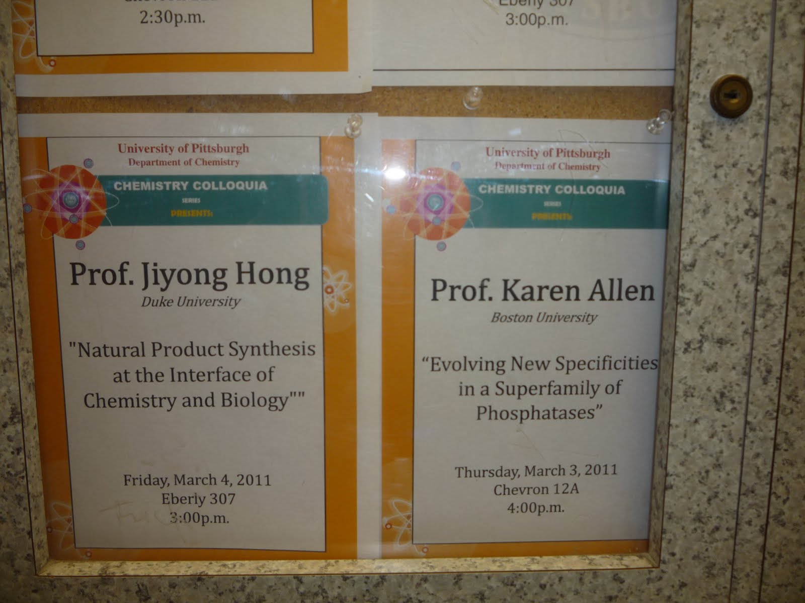Сегодня на факультете было два доклада (seminars). На первый по нано-чему-то-там я не пошел, совсем не моя тема. А на второй по модификациям фосфатазы отправился. Докладывалась профессорша Karen Allen из Бостонского Университета.