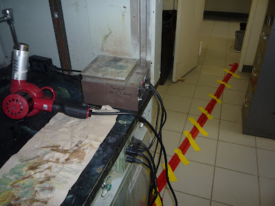В ночь с пятницы на субботу в связи с строительными работами во всем здании отключат электричество. Только ЯМР, главбоксы и прочие важные штуковины останутся на резервном питании. На фото показан кабель, который временно подвели к нашему главбоксу.