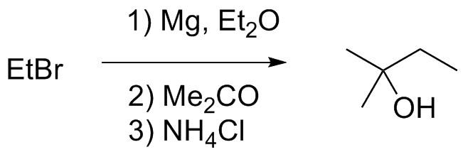 Работы в третьем коллоквиуме были посвящены созданию углерод–углеродной связи: конденсация в духе Кляйзена, Фридель–Крафтс и обязательный Гриньяр. Разобравшись с теорией, я первым получил от Михаила Анатольевича список синтетических целей. Получение бензоилуксусного эфира было не по методичке, а по СОПу (по Organic Syntheses, если хотите) и проходило под руководством кузнецовского аспиранта Олега, которому это вещество зачем-то понадобилось. Фридель–Крафтс был назначен со знакомым мне уже диметилбензоимидазолоном. Сульфохлорирование не послужило моему руководству хорошим уроком, и теперь предстояло его сукцинировать янтарным ангидридом. Так как эти два синтеза были нестандартны, то Гриньяр мне выдали простенький и классический – этилбромид с ацетоном дают 2-метилбутанол-2.