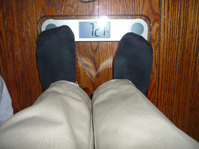 Итак, весы появились, и чтобы они не стояли без дела, решено было устроить соцсоревнование. Мой брат при росте 5 футов 9 дюймов весит 66.5 кг, а я при росте 5' 7’’ вешу всего 71.1 кг. Осталось догонять брата. Даже если мы сравняемся по массе, то я все равно останусь жирнее, и у меня, как я надеюсь, хватит дырок в поясе брюк.
