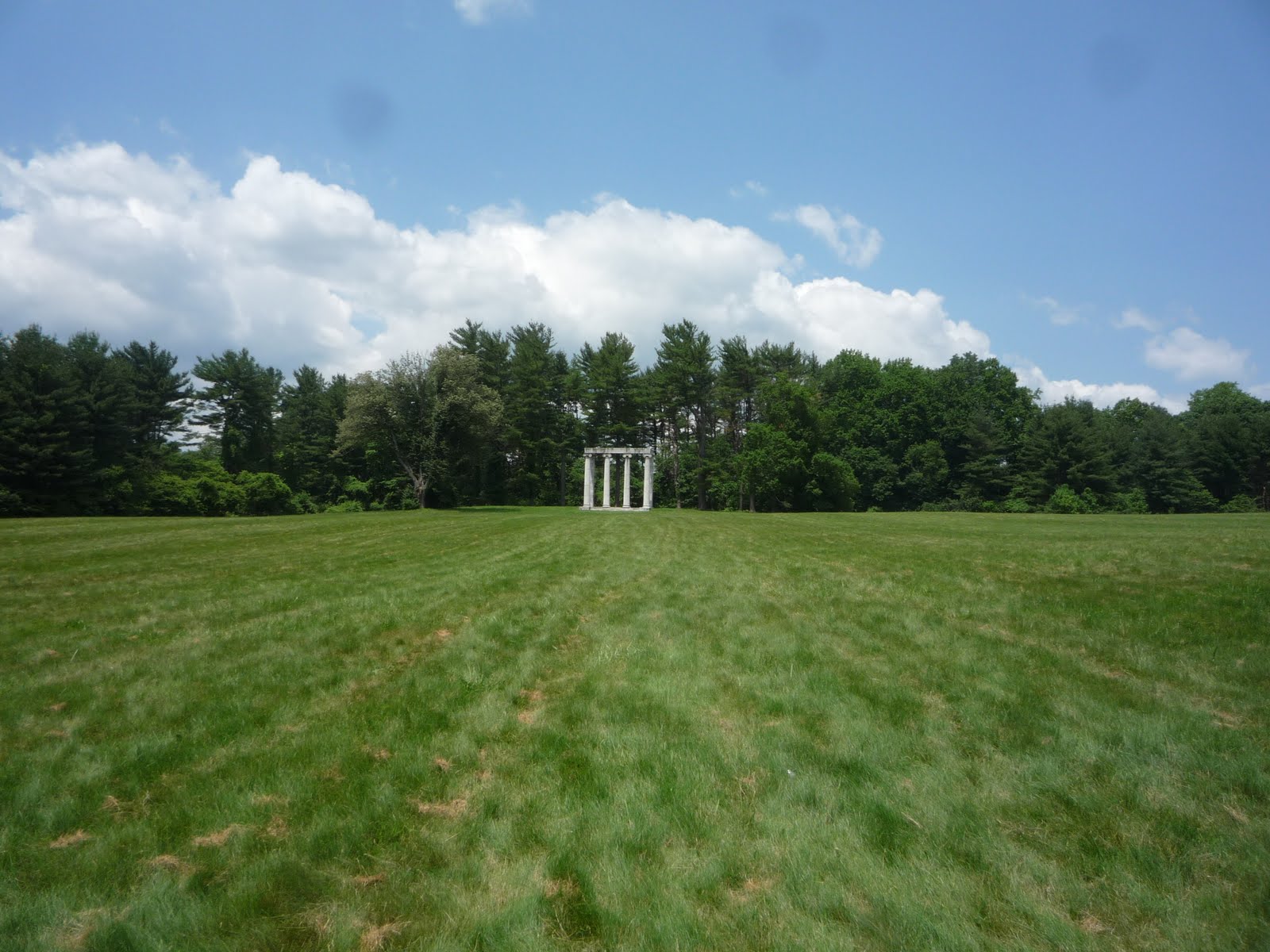 Трава была коротко подстрижена. Налево от меня постепенно вырастал склон холма, но мое внимание привлекла отдаленная колоннада справа.
