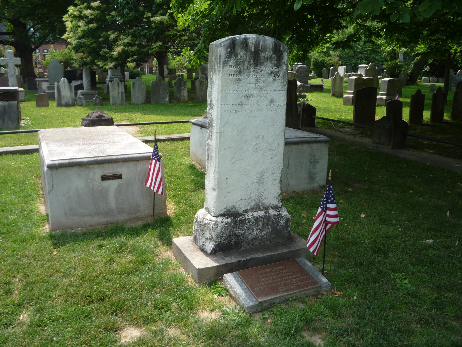 Но я осозновал, что мое посещение принстонского кладбища будет неполным, если я не найду третью могилу – вице-президента Аарона Берра. Не имея ни малейшего представления, где она может быть, я надеялся, что рано или поздно наткнусь на нее, как наткнулся на захоронение Кливлендов. В конце концов, вряд ли это будет безымянный холмик. Я прочесывал участки начала 19 века.