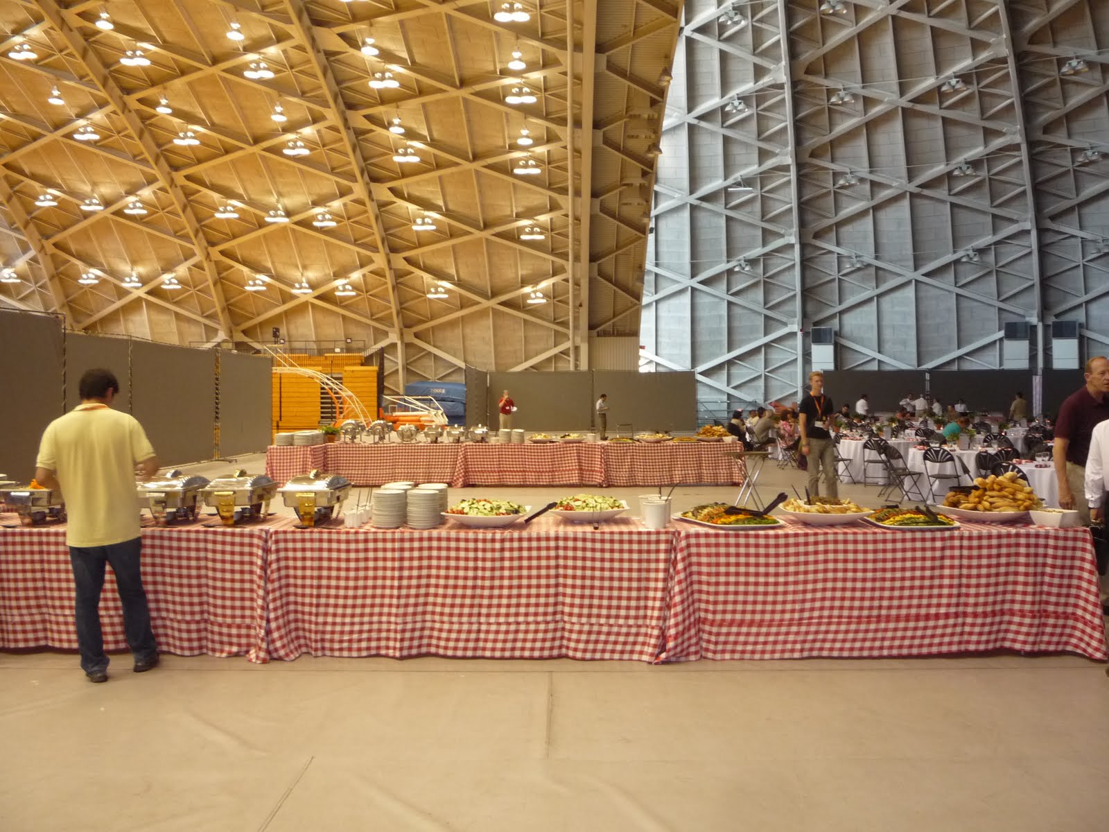 Нет, места для многочисленных столов там хватило, даже забавно было сидеть под таким высоким куполом, но вот на кондиционирование зала они пожадничали. А когда на улице 100 °F, то без кондиционера находиться в помещении неприятно.
