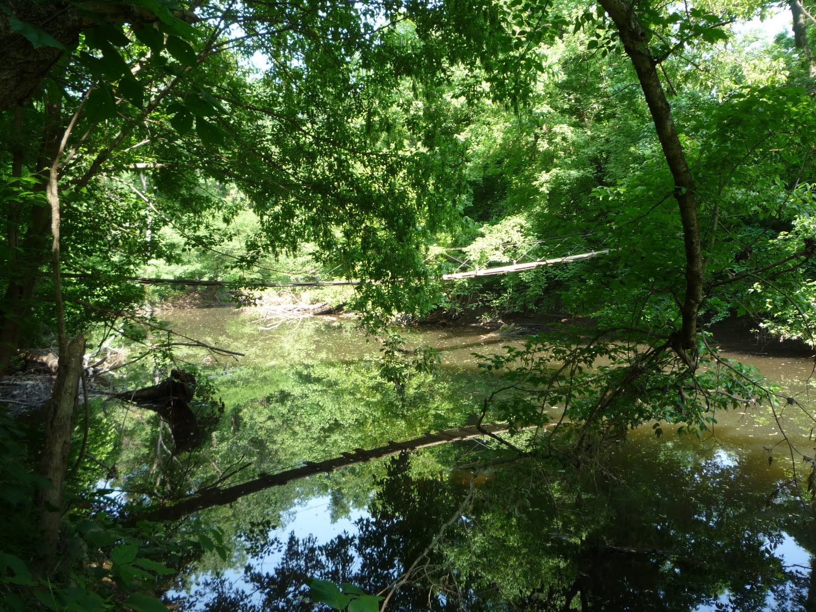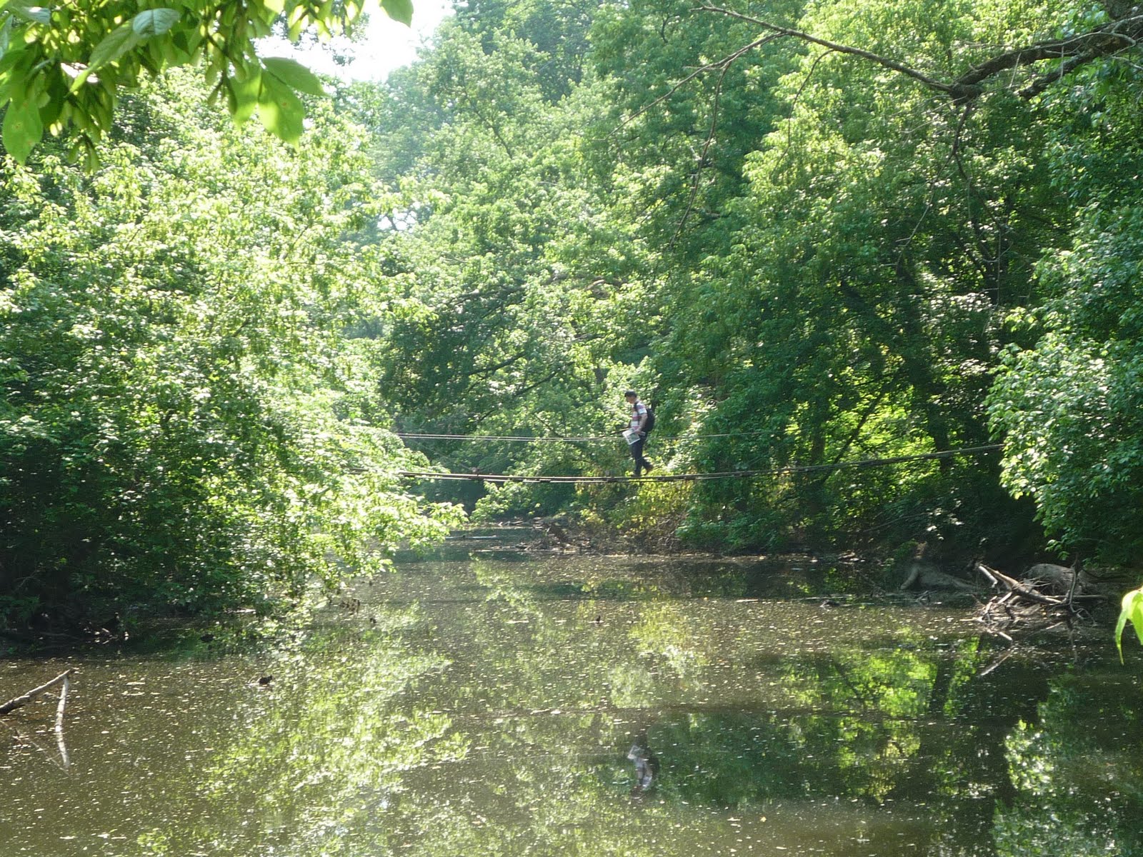Ручей впадает в канал, но я до того места не дошел, а ограничился тем, что перешел на другую сторону ручья и обратно по весьма узкому и шаткому подвесному мосту.